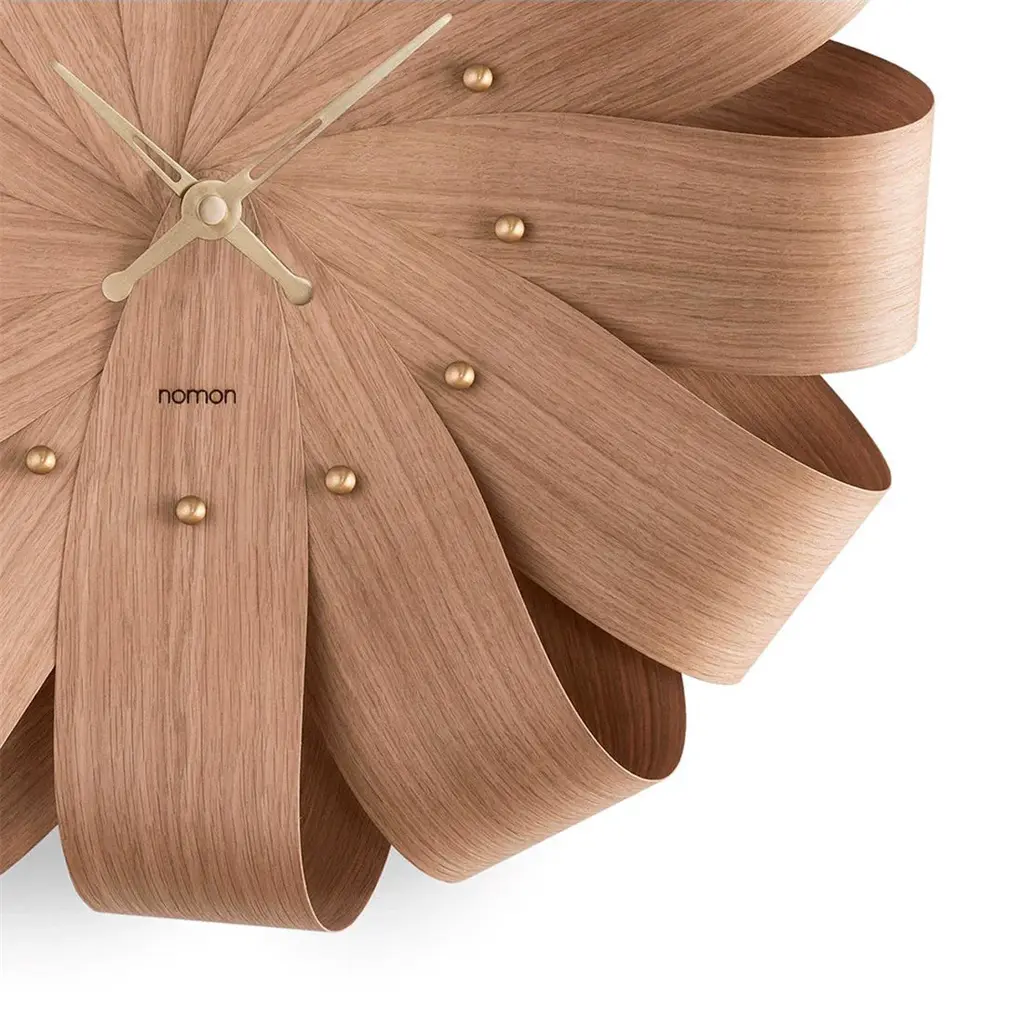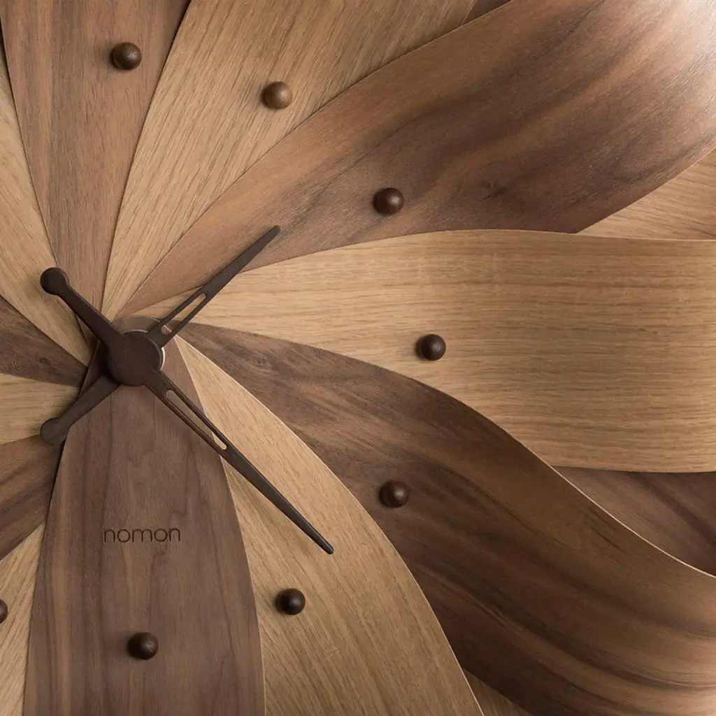 As though buoyed by its namesake Brisa (Spanish for “breeze”), soft folds of wooden strips in oak, walnut or a combination fan out in Nomon’s wall clock from the Barcelona maker’s Soft Collection. Complemented by clock hands and time signals in the same natural wood or polished brass, the timepiece is beautifully crafted by hand in Spain and powered by a precision German UTS movement