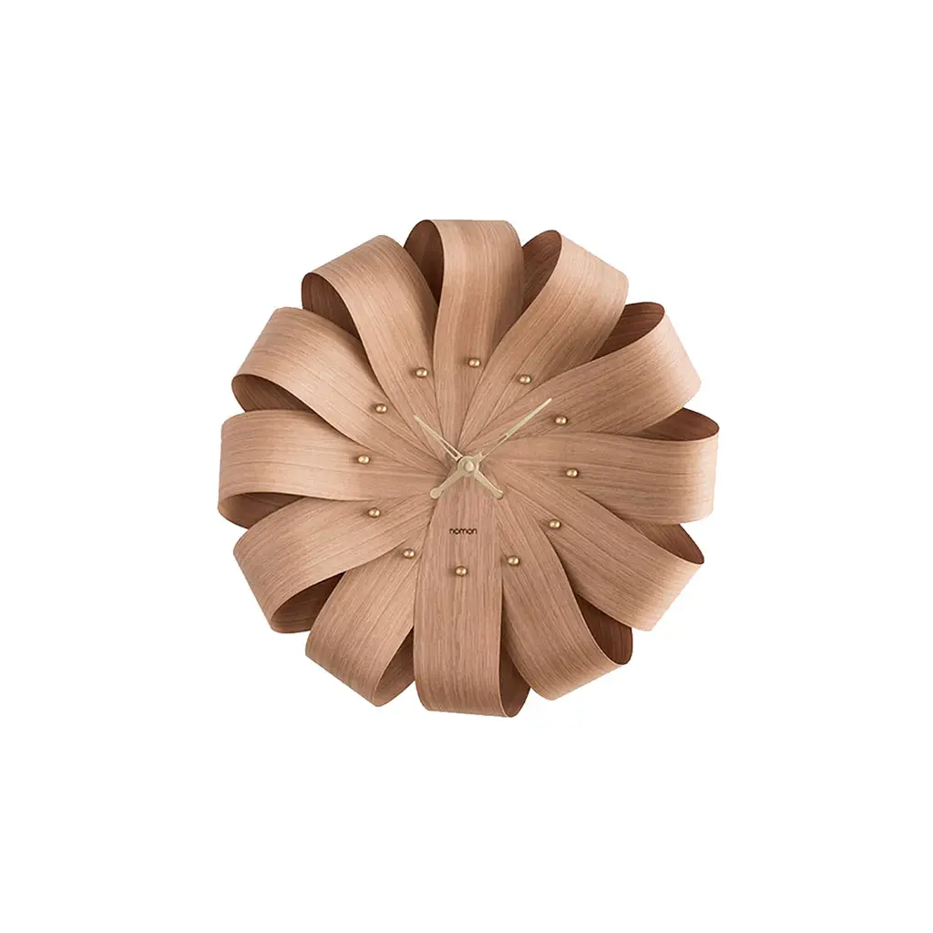 As though buoyed by its namesake Brisa (Spanish for “breeze”), soft folds of wooden strips in oak, walnut or a combination fan out in Nomon’s wall clock from the Barcelona maker’s Soft Collection. Complemented by clock hands and time signals in the same natural wood or polished brass, the timepiece is beautifully crafted by hand in Spain and powered by a precision German UTS movement