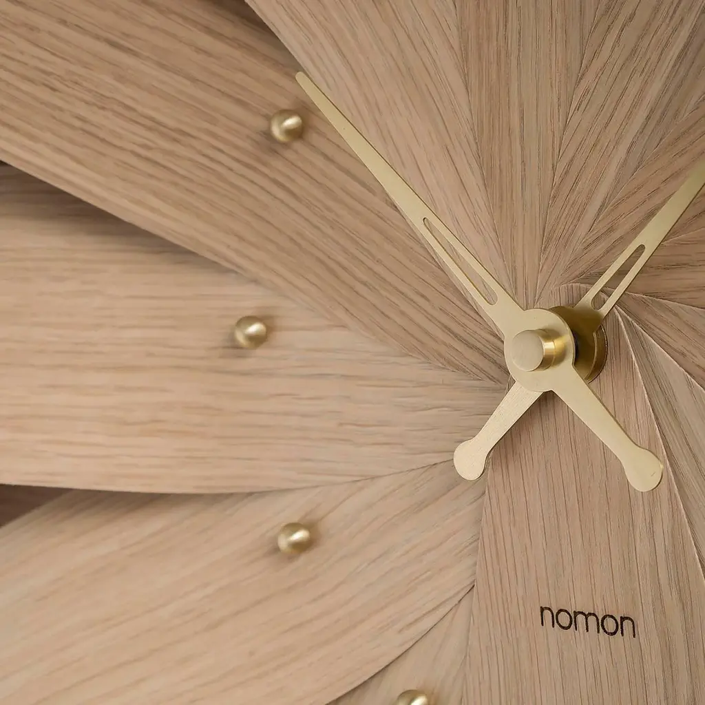 As though buoyed by its namesake Brisa (Spanish for “breeze”), soft folds of wooden strips in oak, walnut or a combination fan out in Nomon’s wall clock from the Barcelona maker’s Soft Collection. Complemented by clock hands and time signals in the same natural wood or polished brass, the timepiece is beautifully crafted by hand in Spain and powered by a precision German UTS movement