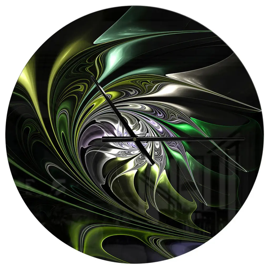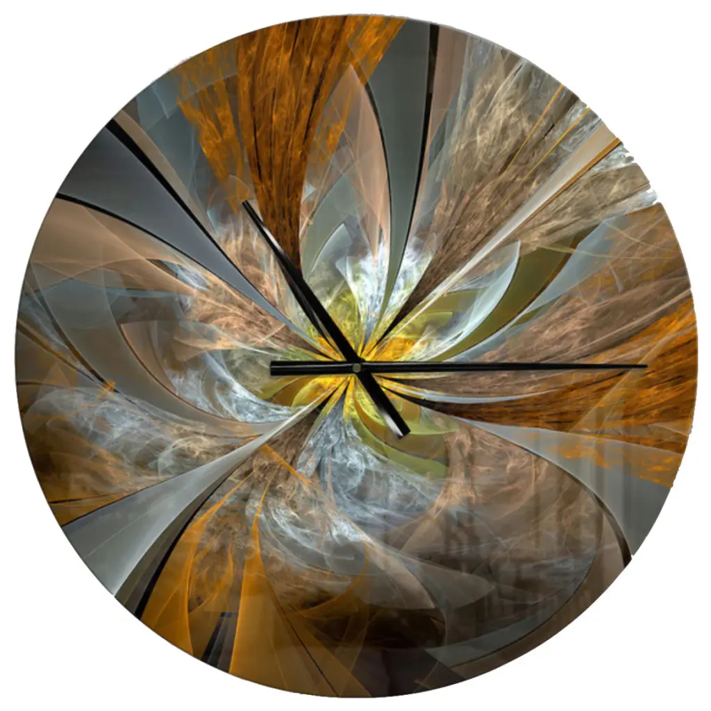 A beautiful addition to any home or office, this Modern & Contemporary 3 panels wall clock is made on 100% solid aluminum. It has a highly reflective glossy finish creating a sleek modern look. This Brown Blue Fractal Flower in Black wall clock arrives completely ready to hang on the wall. Simply insert the �AAA� battery included with your order.This Modern Oversized Clock makes it the focal point of any room.Features - Ultra Gloss Coating ensures colors are extra vibrant with light reflection. - 1mm Aluminum grade sheet metal. - 1-inch mounting frame gives the illusion of artwork floating on the wall. - Mounting brackets and instructions are included. - High quality digital images are created directly into a glossy aluminum panel, producing a stunning and captivating print in the glossy finish of the metal. - Looks better than any photo paper and guaranteed to last at least 20 years. - Easy to clean with a microfiber cloth. - "AAA" battery included with your order. - Easy to hang. - Style: Contemporary - Material: Metal - Shape: RoundSee Options drop down for available sizes.