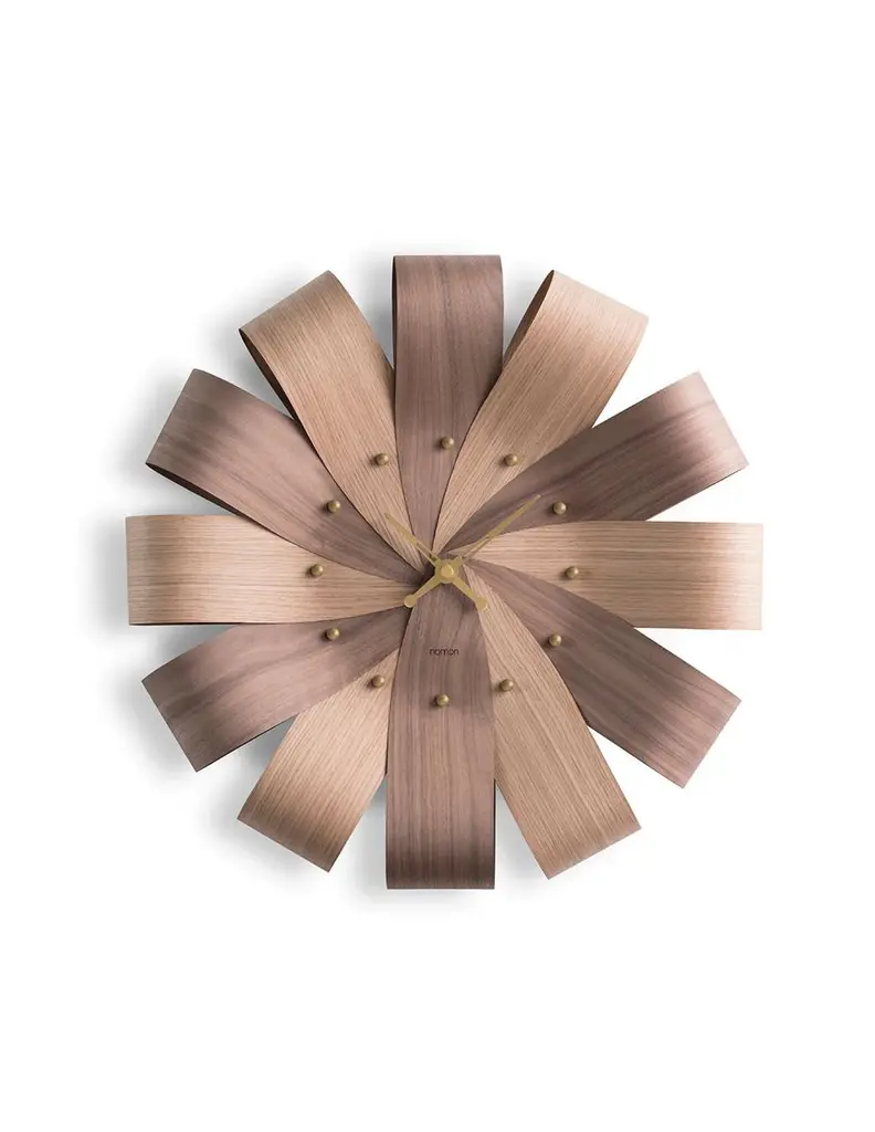 Ciclo Gold wall clock made of oak or walnut veneer with polished brass hands and time signals.Ciclo Gold wall clock : Body in walnut wood or in Oak wood or Walnut and Oak wood , hands and time signals in polished brassEach clock is a unique handmade pieceWarranty: Limited 2 YearCalifornia Residents: Prop 65 regulations.