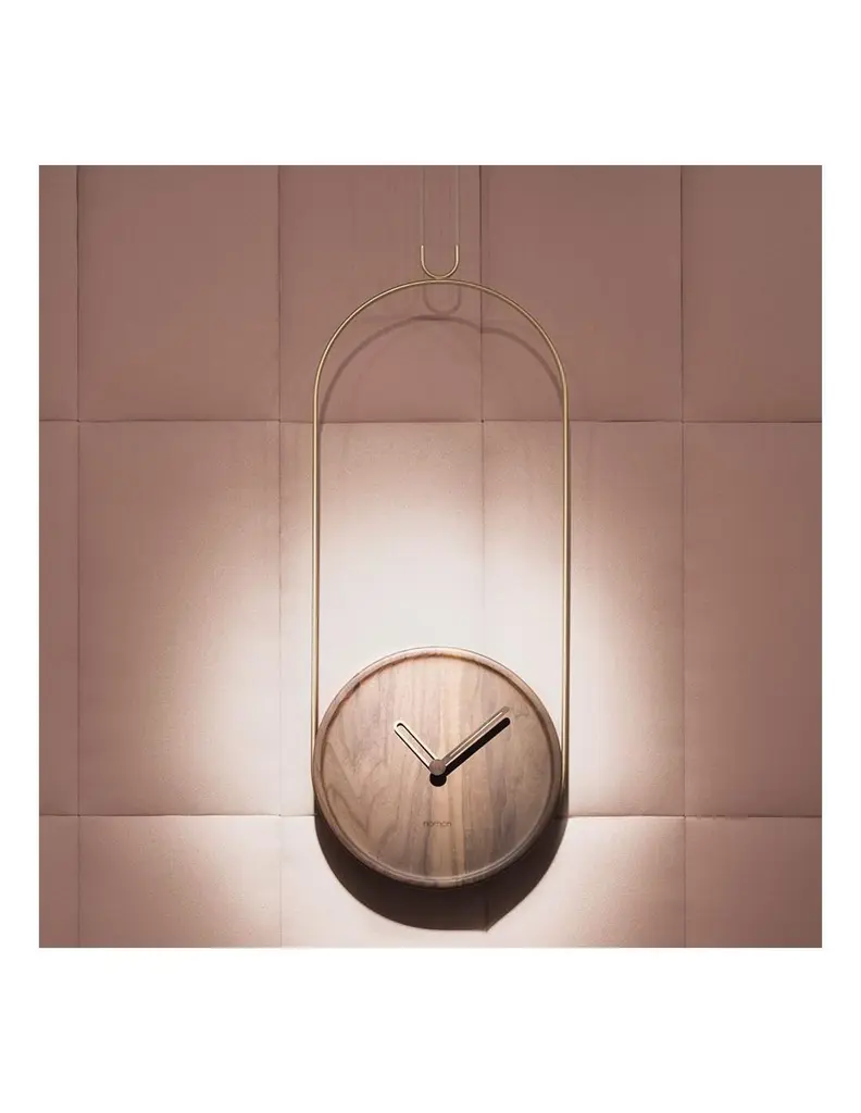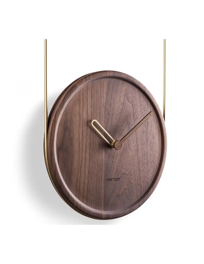 The Colgante Walnut is a sophisticated wall clock that is suspended from a curved metal rod finished in polished or black brass.Colgante Walnut Wall Clock : The Case is made of Walnut wood , Needles made of Walnut wood with polished brass or black details.Warranty: 1 yearEach clock is a unique handmade pieceCalifornia Residents: Prop 65 regulations.