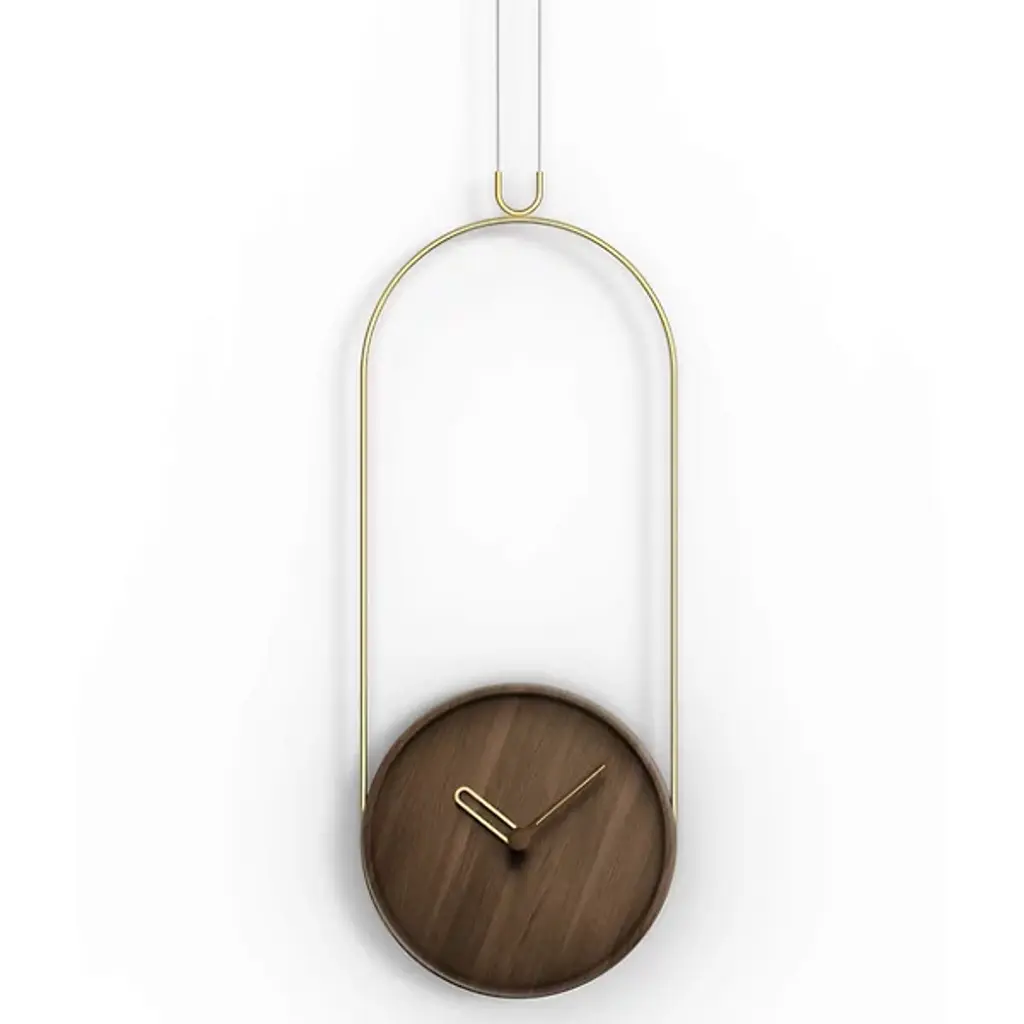 Add a decorative touch to your modern home with the Colgante Walnut Wall Clock by Nomon. From Spanish designer Andres Martinez, this minimalistic piece starts with a slim metal ring that smoothly upholds the rounded clock. Crafted from solid walnut wood, the clock presents a smooth and natural surface with matching wooden and polished metal hands adorning its face.
