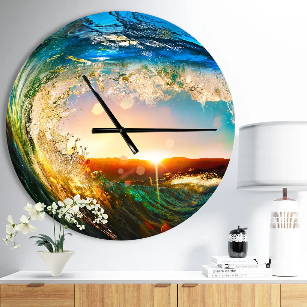 Colored Ocean Waves Falling Down Large Coastal Metal Clock, 23x23