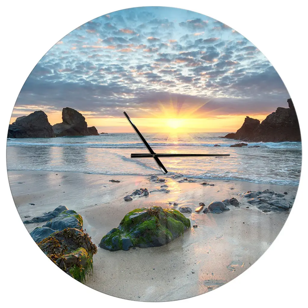 A beautiful addition to any home or office, this Modern & Contemporary round wall clock is made on 100% solid aluminum. It has a highly reflective glossy finish creating a sleek modern look. This Colored Ocean Waves Falling Down wall clock arrives completely ready to hang on the wall. Simply insert the �AAA� battery included with your order.Available in several size, this Modern Oversized Clock makes it the focal point of any room.Features - Ultra Gloss Coating ensures colors are extra vibrant with light reflection. - 1mm Aluminum grade sheet metal. - 1-inch mounting frame gives the illusion of artwork floating on the wall. - Mounting brackets and instructions are included. - High quality digital images are created directly into a glossy aluminum panel, producing a stunning and captivating print in the glossy finish of the metal. - Looks better than any photo paper and guaranteed to last at least 20 years. - Easy to clean with a microfiber cloth. - "AAA" battery included with your order. - Easy to hang. - Style: Modern & Contemporary - Material: Metal - Shape: RoundSee Options drop down for available sizes.
