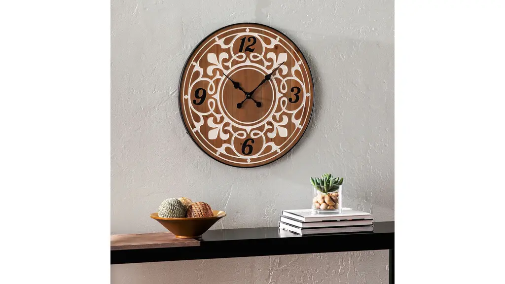 Give your walls stylish flair with the Congleton Wall Clock. Metal features add a sleek, industrial feel to your living space, while unique fleur-de-lis patterns and elegant numbers decorate the oversized clock face. Perfect above an entryway console or in your home office, this round clock beautifully blends functional design and rustic style. Make the most of your wall d_cor with this hanging clock.