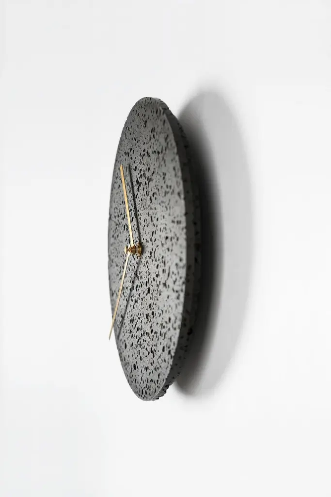 Wall clock 'Moment' by Buzao x Bentu design.Black lava stoneMeasure: Diameter 24cm.