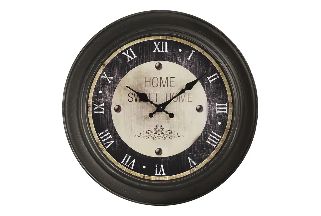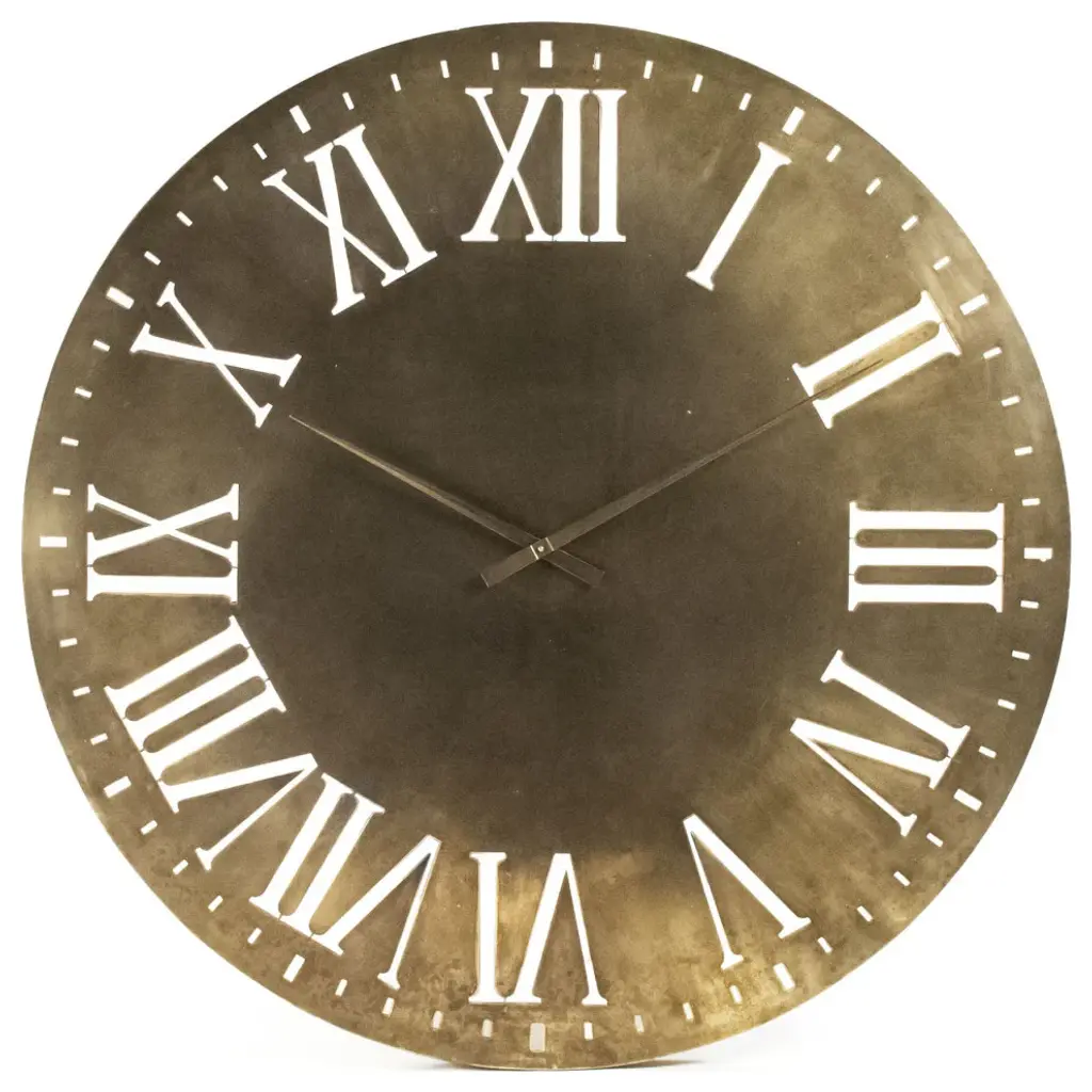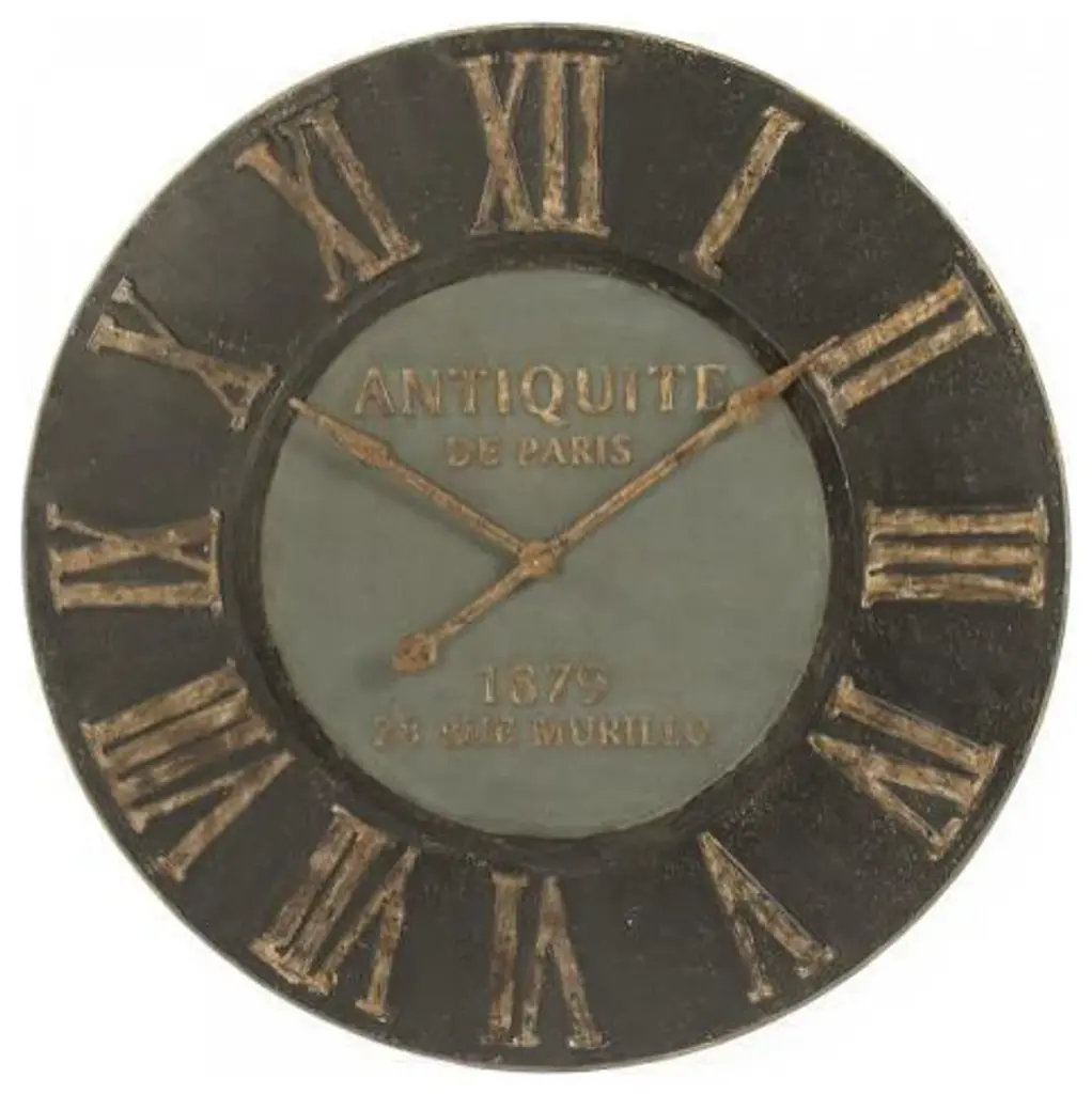 Round iron wall clock with distressed black roman numerals on white background. Zentique combines unique designs with high-end materials to bring you the very best home decor in the business. When you order a product engineered and manufactured by Zentique, you''re guaranteed to get a product that is built to last for years and years to come. This product will come in ship-safe packaging materials and will be sure to impress!DimensionsLength: 43. 5 in. Width: 2 in. Height: 43. 5 in. Some assembly required: No