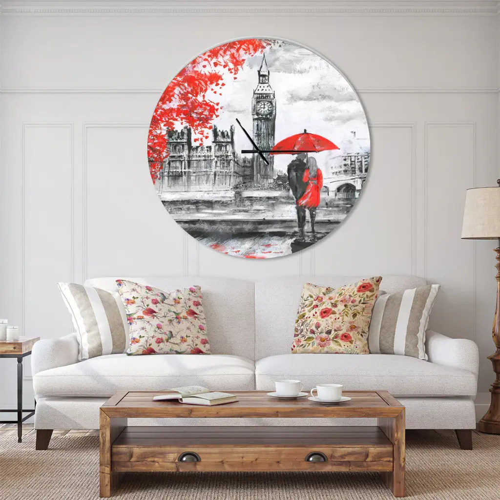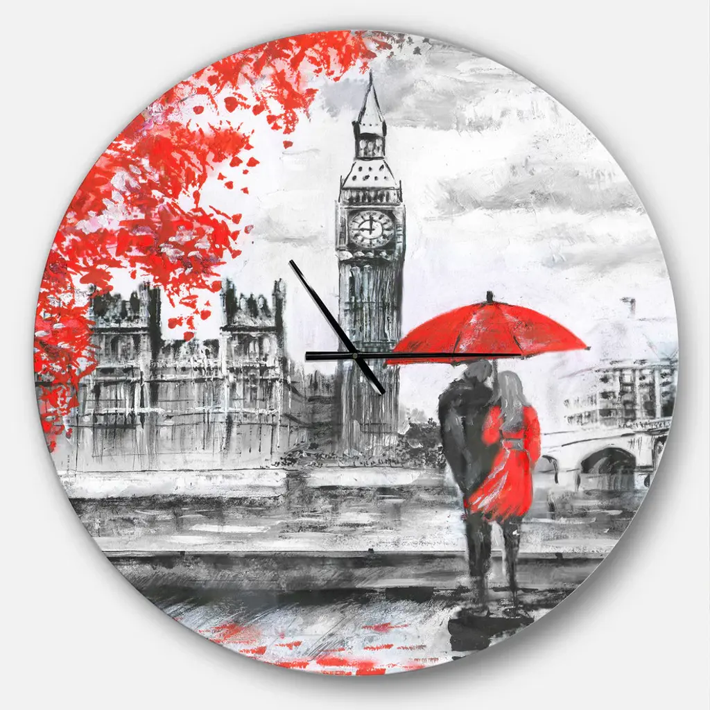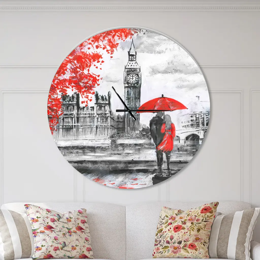 Couples Walking In London Oversized French Country Metal Clock, 36x36