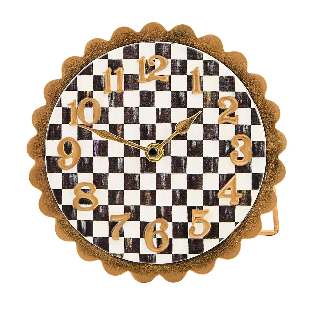 Keep time in style with this Courtly Check Heart Pendant Wall Clock. Crafted from durable galvanized metal, it features our signature Courtly Check and is finished with a scalloped border and heart-shaped pendant.