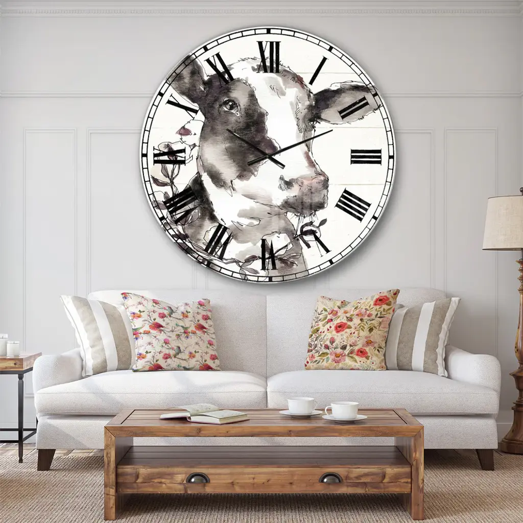 Cow Portrait Country Life Wildlife Oversized Metal Clock, 36x36