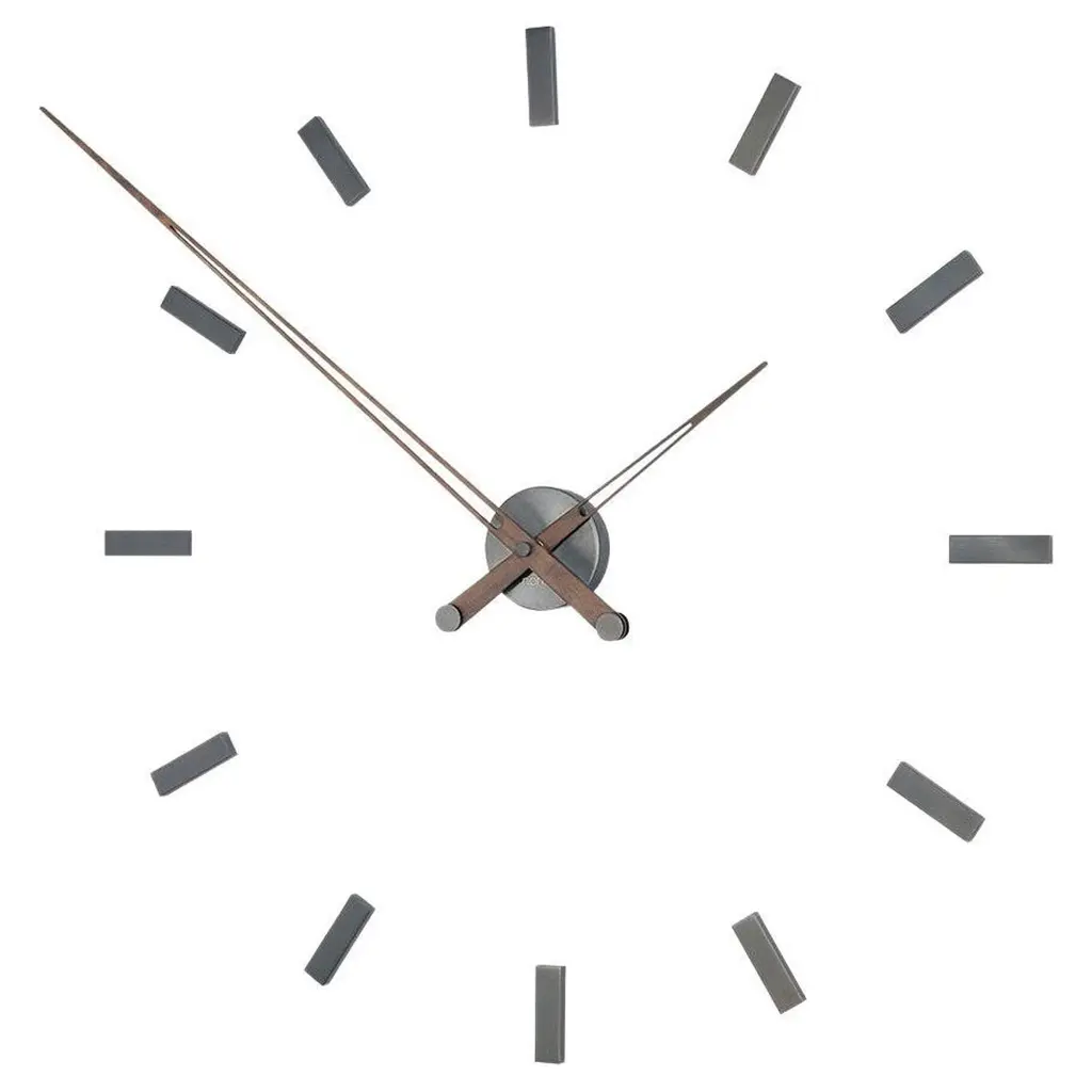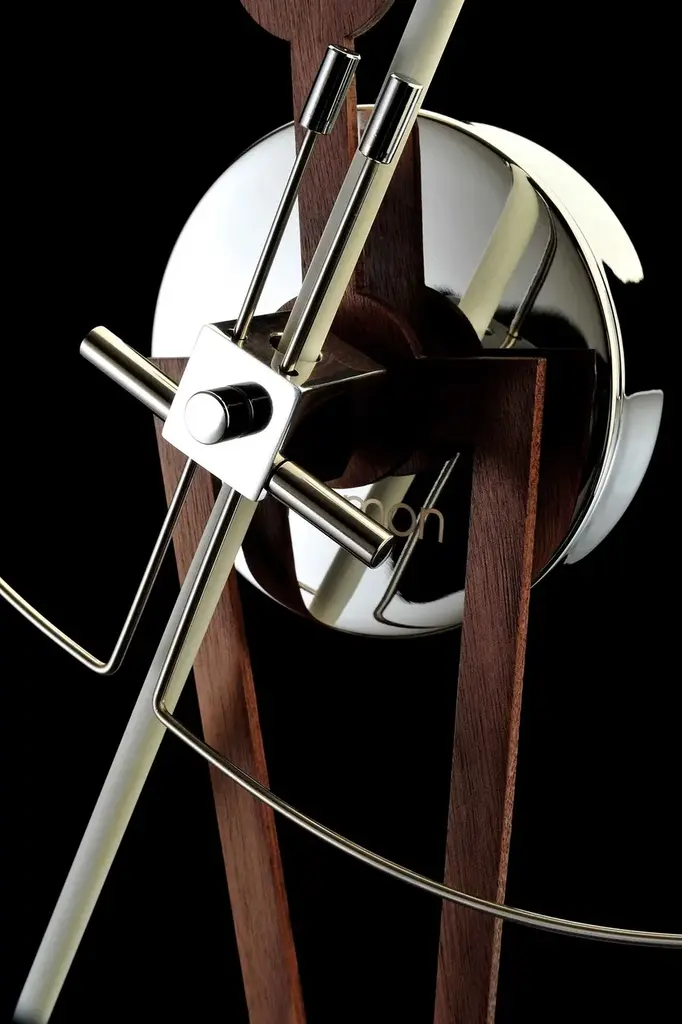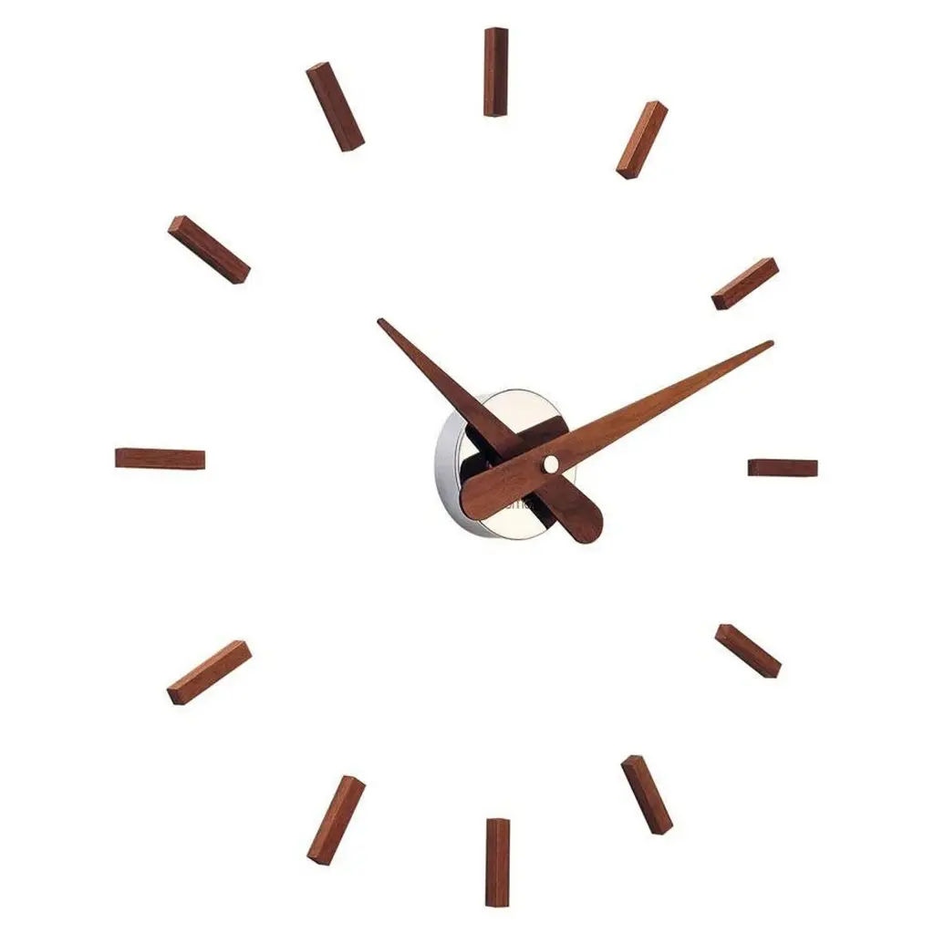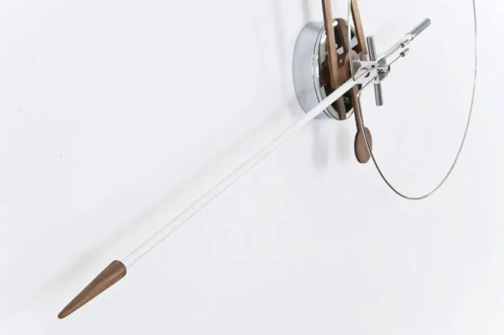 CRIS is a wooden and metal wall clock. Just like a Dadaist poem, Nomon breaks all the rules, punctuation marks and conventions. The dial flows on one side, the watch hands, different, on the other. The fine and fiberglass minute hand, is lengthened. The hour hand, on the other hand, emulates a confident, sober and resolute walnut wood arrow. Materials: Cris N: Chromed box, minute hand in walnut and red arrow (CRN00NNR);Cris N: Chromed box, minute hand white fiberglass and walnut arrow (CRN000BN);Cris G: Polished brass box, minute hand in black fiberglass and walnut arrow. (CRND00NN).