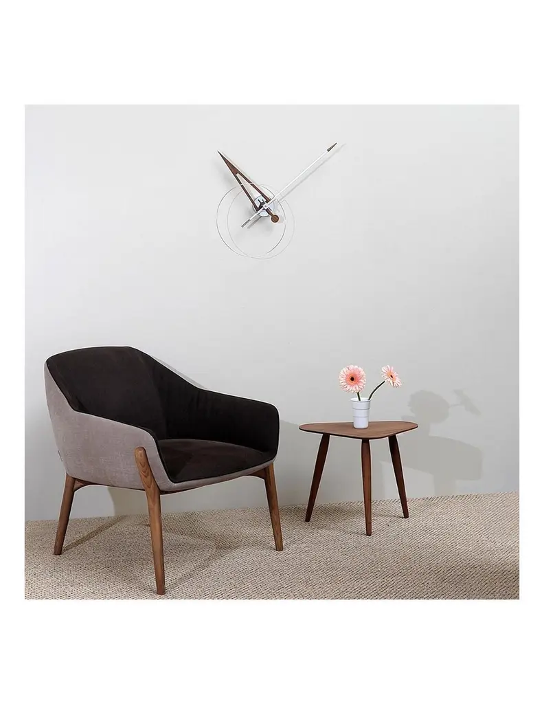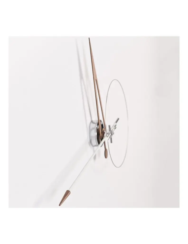 This exclusive clock has a walnut minutes made with a red tip the other made of white fiberglass with the walnut tip its earth colors make it easy to combine and its open design gives the possibility to adapt it to any decoration.Cris N: Chromed box, minute hand in walnut and red arrow. Chromed box, white fiberglass minute hand and walnut arrow. Each clock is a unique handmade pieceCalifornia Residents: Prop 65 regulations.