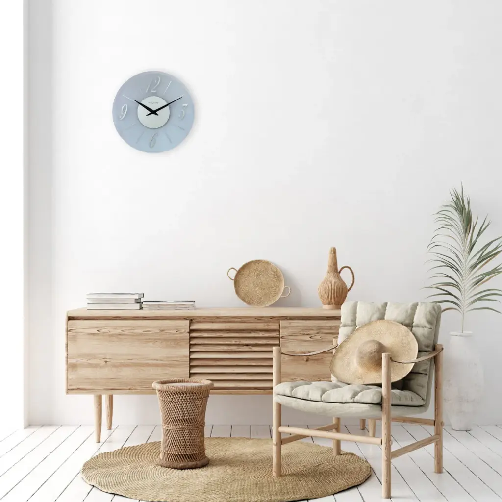 NeXtime''s Dali silent wall clock (8X20inches) displays a center mirror surrounded by frosted glass with mirrored numbers, a look of elegance and beauty. This clock will add a touch of contemporary sophistication to your interior. This clock uses 1 x AA battery (not included). Comes in rectangular or round.