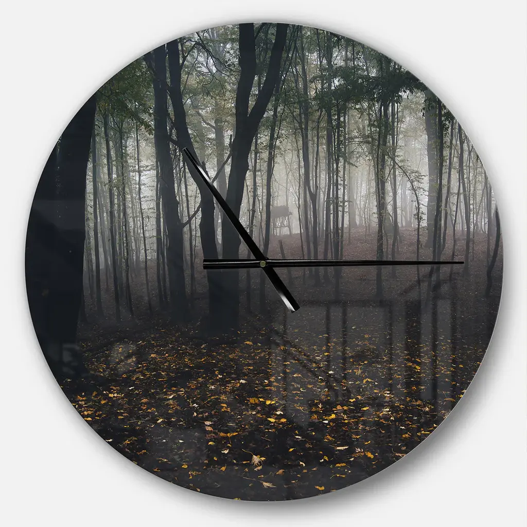 Dark Spooky Misty Wild Forest Traditional Metal Clock, 23x23
