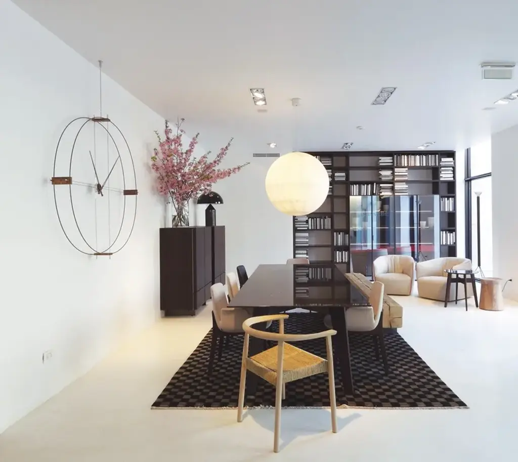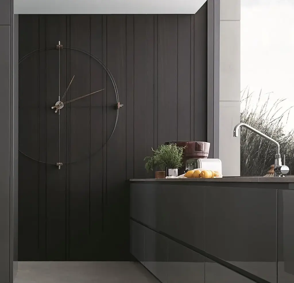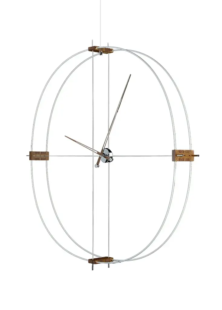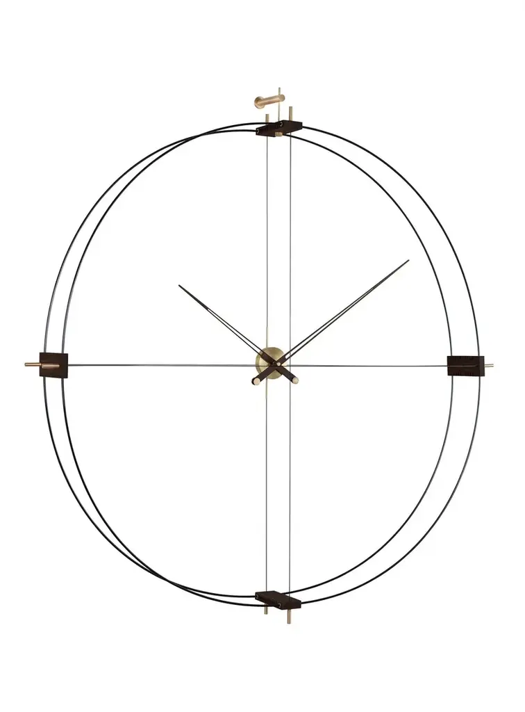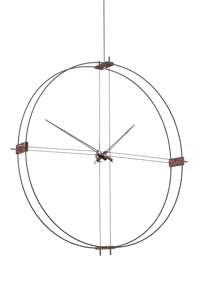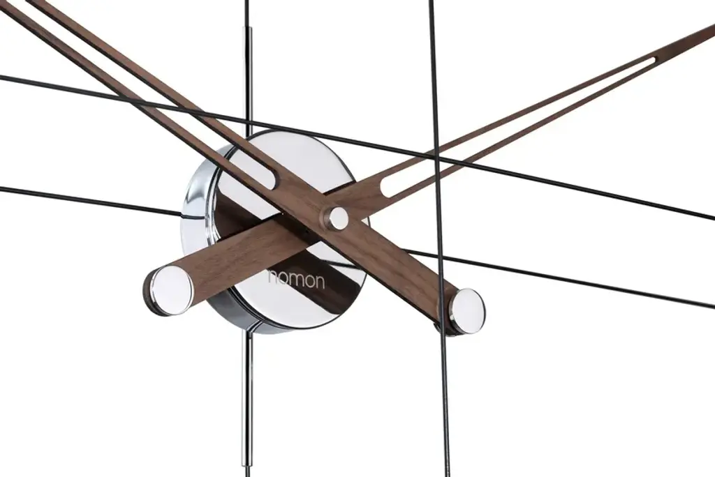 DELMORI is a wall clock in metal and wood. Astonishing in dimensions, it is the evolution of the Barcelona collection elevated to its maximum. Its 130 cm diameter makes it Nomon’s largest clock. The possibility of installing it on the wall or suspended in the air from the ceiling increases its versatility.DELMORI N (DEN000NN / DEN000BN)Box: Chromed steelHands: Walnut or wenge woodRing: Black or white fiberglassDELMORI G (DEG000NN / DEG000WN)Box: Polished brassHands: Walnut or wenge woodRing: Black fiberglass
