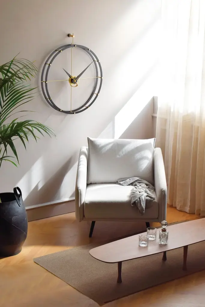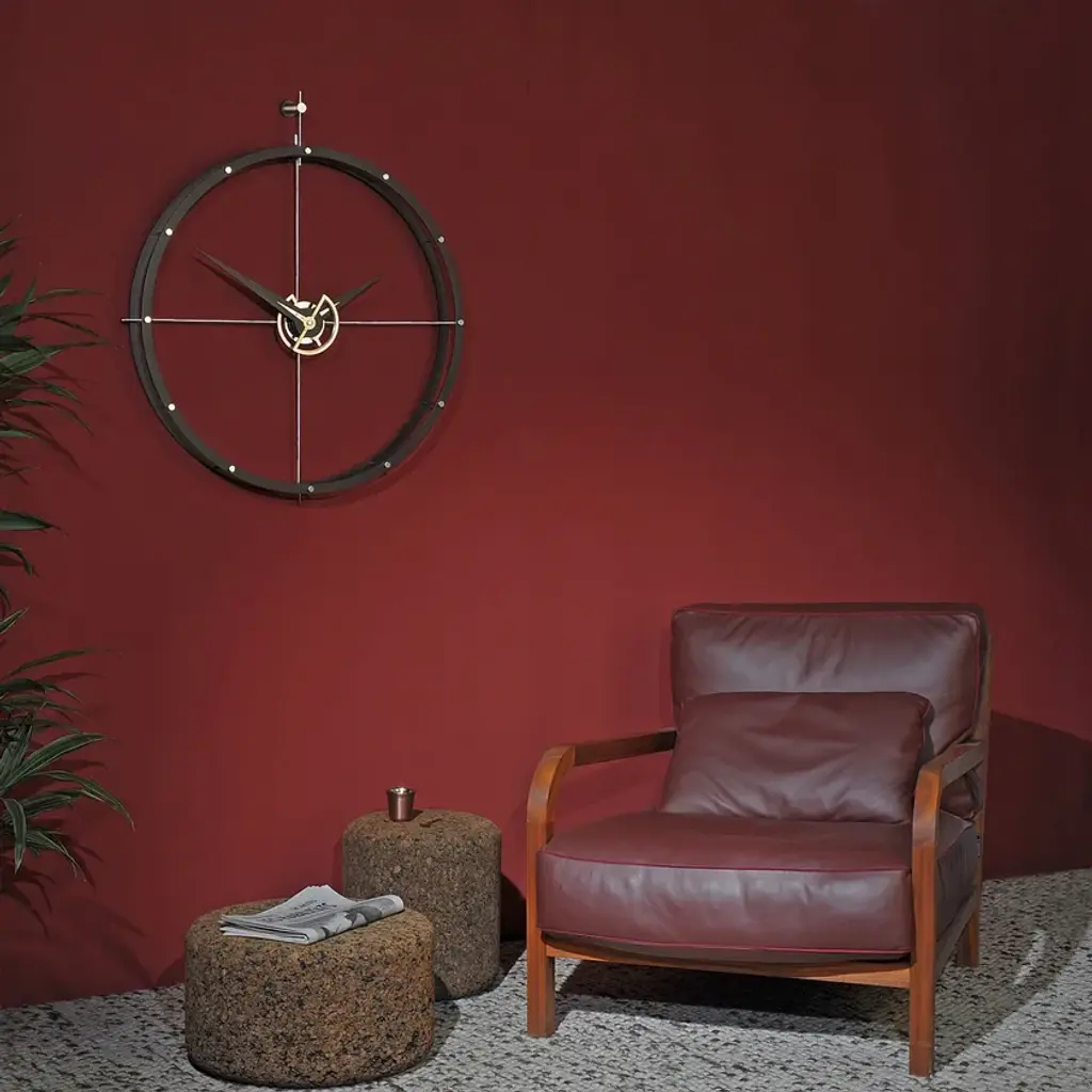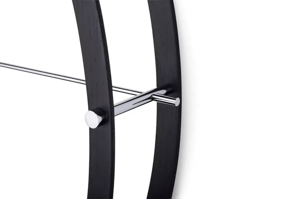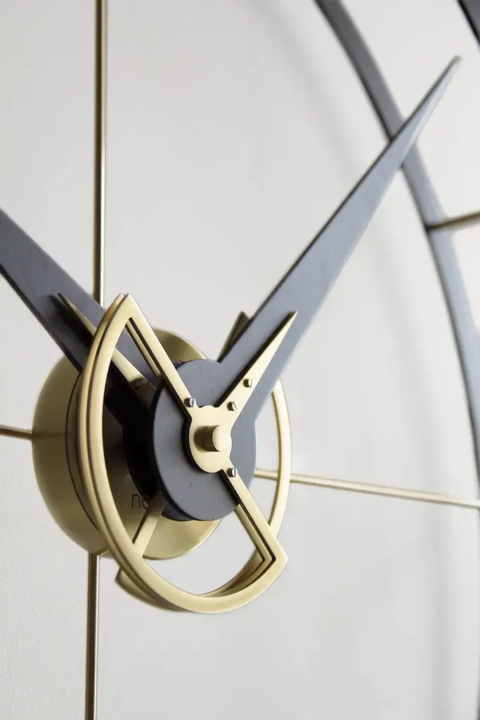 DOBLE O is a wooden wall clock. With its double dial and the ornamental elements of the hands, this is one of Nomon’s most elaborate models. The gold details on the central box give it an exclusive and unique character, which is completed with the delicate time signals. Doble O N (DONN)Box: Chromed brassHands: Calabo wood and chromed brassRings: Calabo woodDoble O NG (DONNG)Box: Polished brassHands: Calabo wood and polished brassCircle: Calabo wood