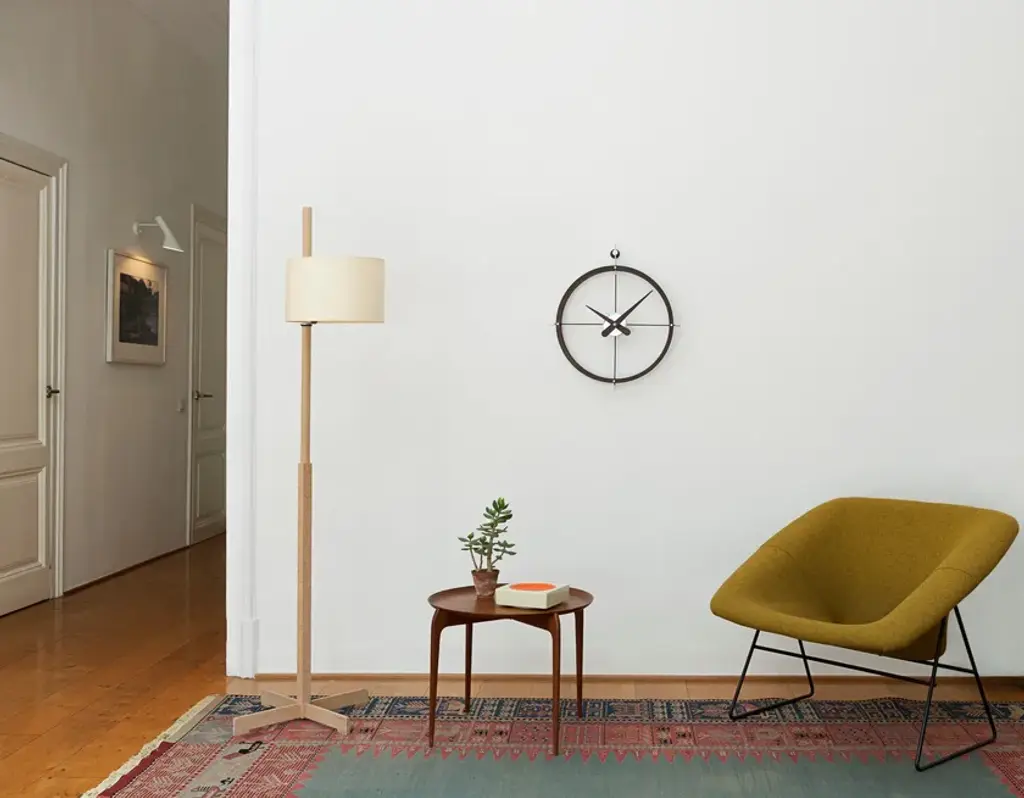 DOS PUNTOS is a wooden wall clock. Both in its polished steel and in its calabo wood version, Dos Puntos is reminiscent of an old compass. The cardinal points are replaced by the time zones, where the Greenwich meridian is here the central box. Unlike the rest of the collections, the thickness of its dial takes greater presence, combined with the same material as the clock hands.Dos puntos N (DPN)Box: Chromed brassHands: Calabo woodRings: Calabo woodDos puntos NG (DPNG)Box: Polished brassHands: Calabo woodRings: Calabo wood