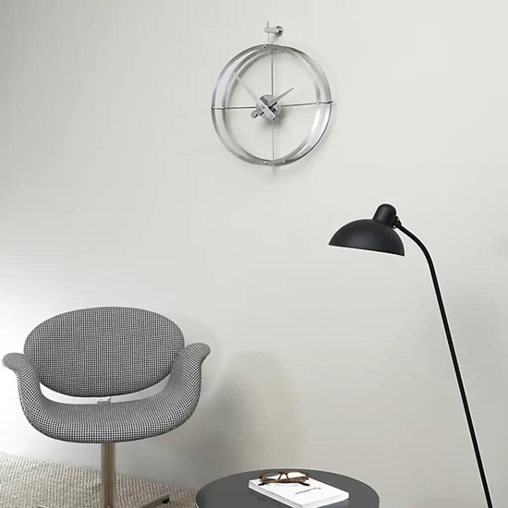 The Dos Puntos Wall Clock by Nomon serves as a functional art piece in any contemporary setting. From Spanish designer José María Reina, this stunning fixture features a dual ring frame with sharp, steel hands. Steel brackets support the frame while adding a subtle industrial element while maintaining the piece’s minimal style.