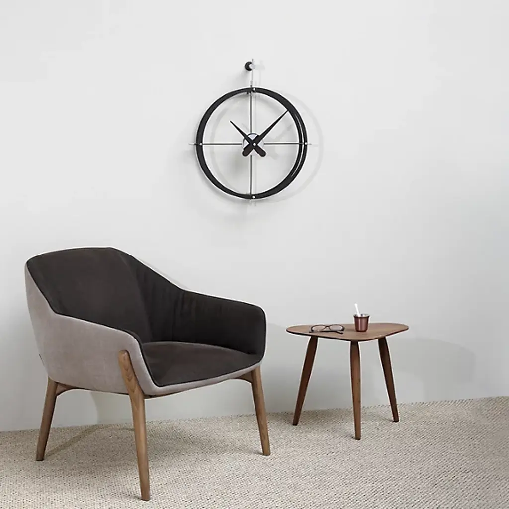The Dos Puntos Wall Clock by Nomon serves as a functional art piece in any contemporary setting. From Spanish designer José María Reina, this stunning fixture features a dual ring frame with sharp, steel hands. Steel brackets support the frame while adding a subtle industrial element while maintaining the piece’s minimal style.