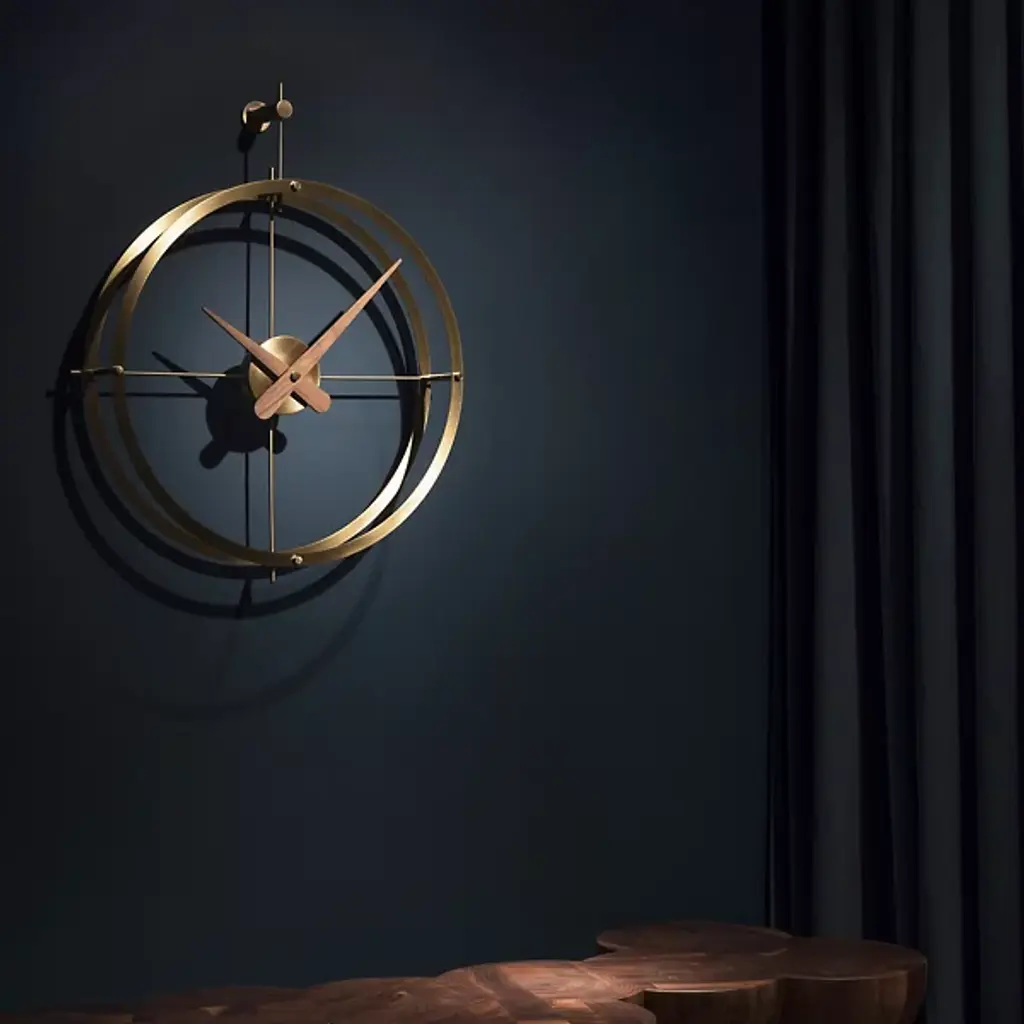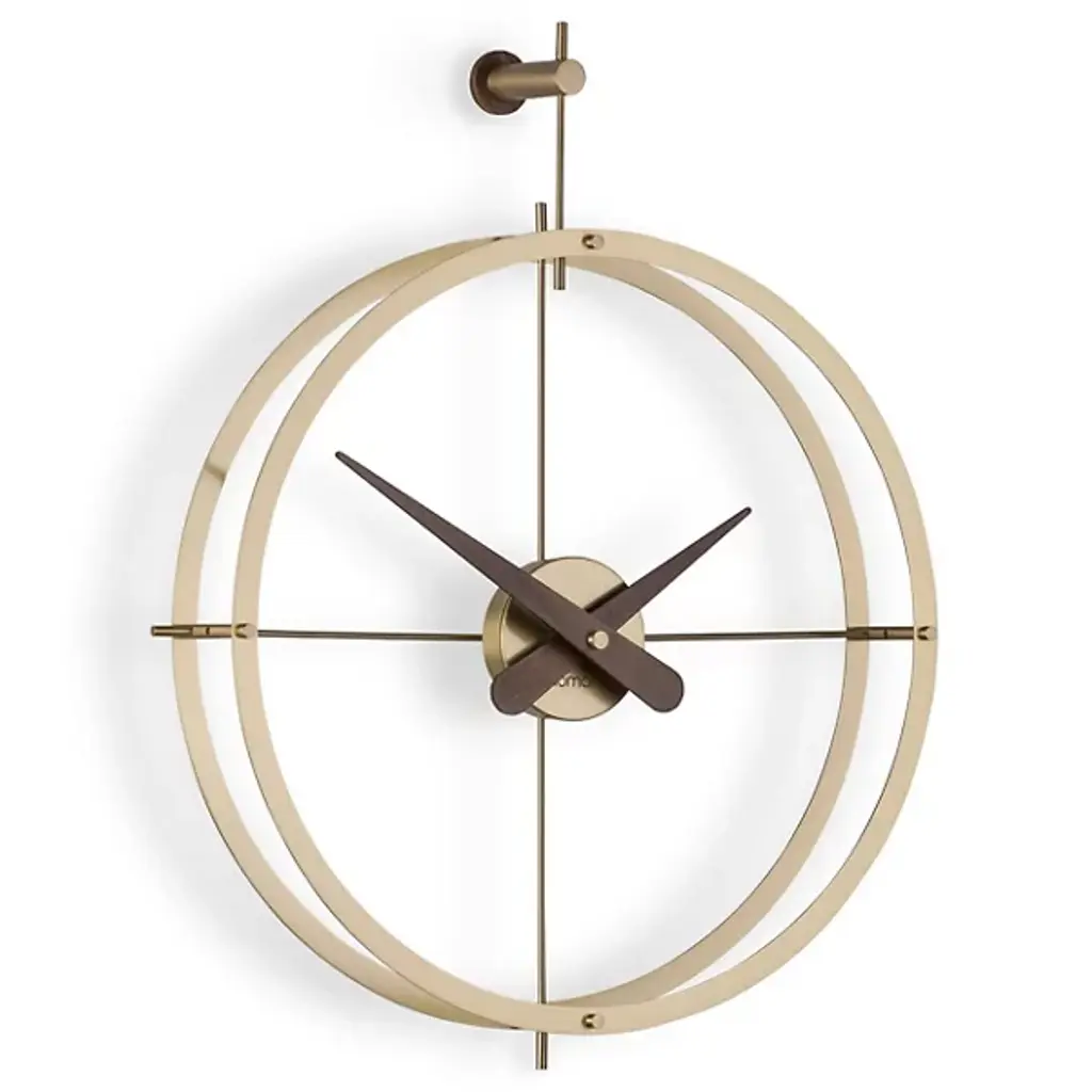 Appreciate the cutting-edge design of the Dos Puntos Wall Clock Premium Edition from Nomon. With a teleological tradition that stems from Span, artisan Andres Martinez expertly combines the highest quality materials into a work of art that blends beauty with functionality. Brass is the primary element of the clock’s structure. A seamless loop wends around intersecting vertical and horizontal fixtures. The result is a lovely dial that calls to mind the recognizable form of navigational instruments. This clock will captivate anyone keeping track of time.