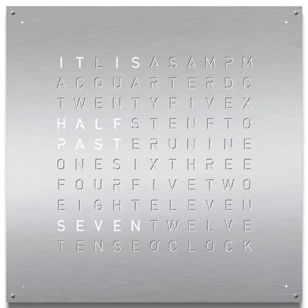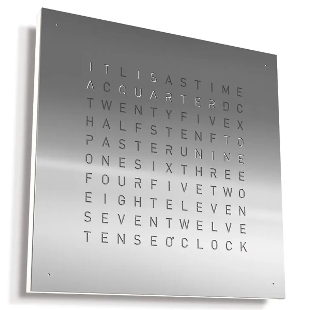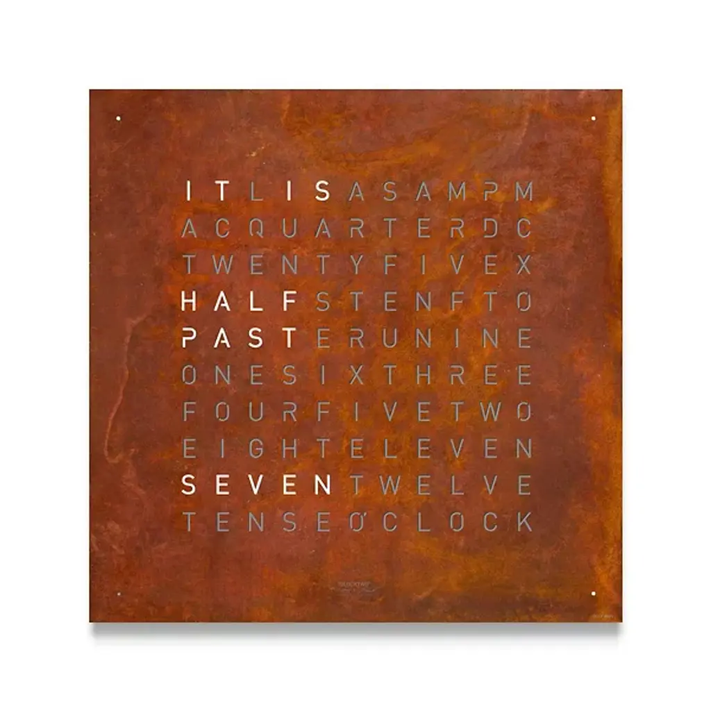 The more intuitive way to read a clock. This EARTH 45 Wall Clock is a stunner, with the spelled out words to tell the time quickly and with real-time recognition. It's a wonderful way to add flair with a time telling implement, without doing the same thing as everyone else. This is a truly unique and interesting way to use a timepiece as an art piece, without losing any functionality.