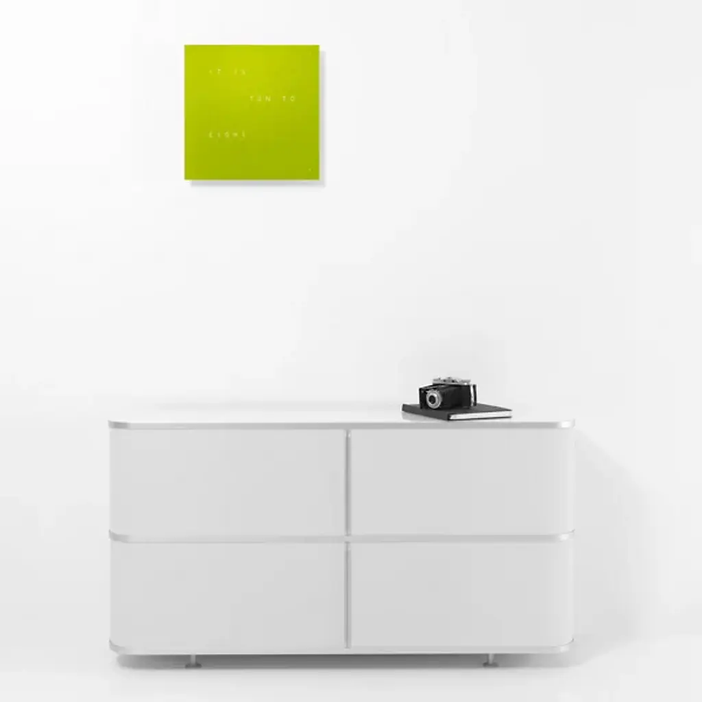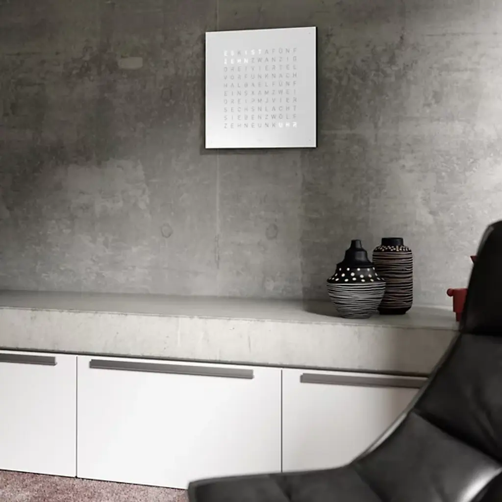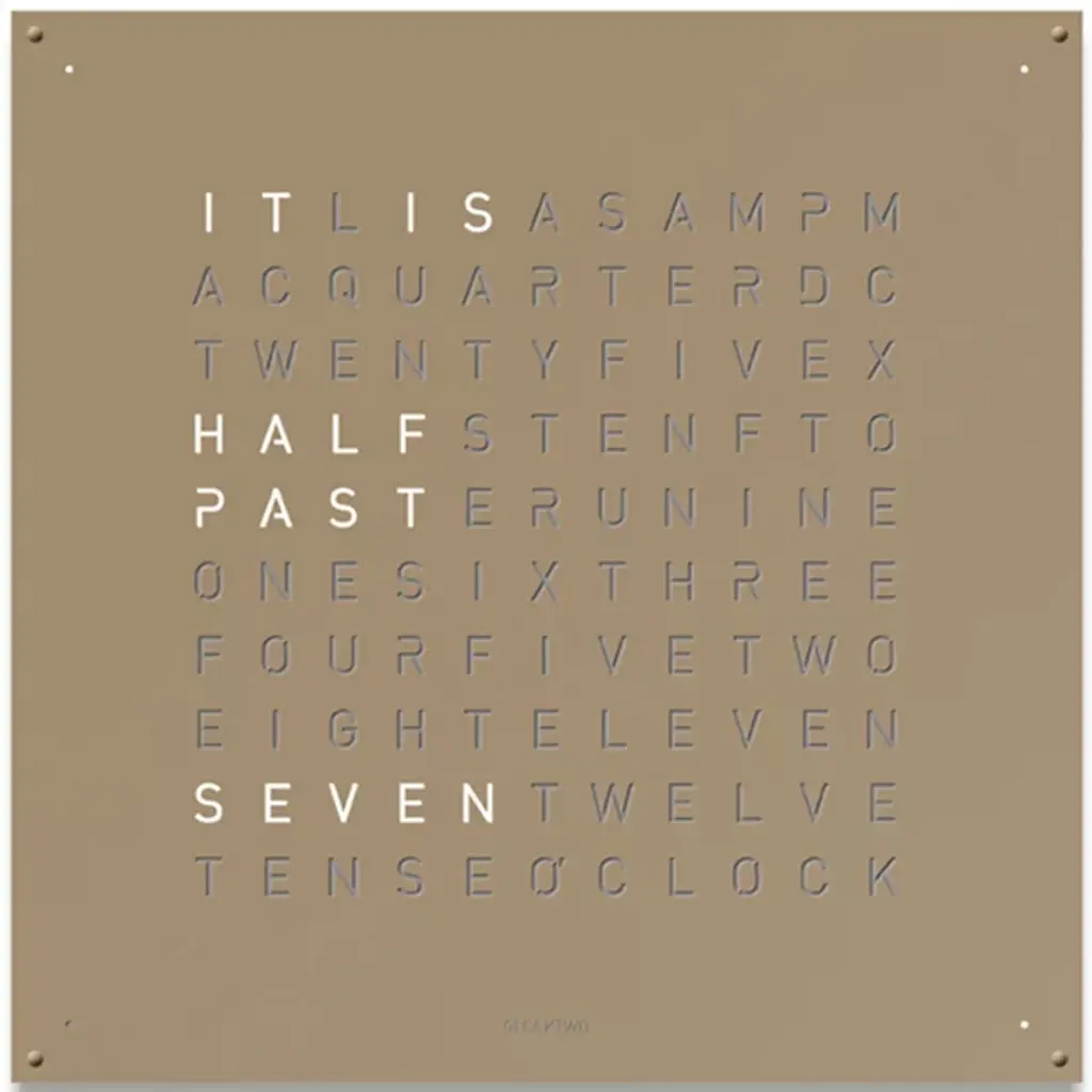 The more intuitive way to read a clock. This EARTH 45 Wall Clock is a stunner, with the spelled out words to tell the time quickly and with real-time recognition. It's a wonderful way to add flair with a time telling implement, without doing the same thing as everyone else. This is a truly unique and interesting way to use a timepiece as an art piece, without losing any functionality.