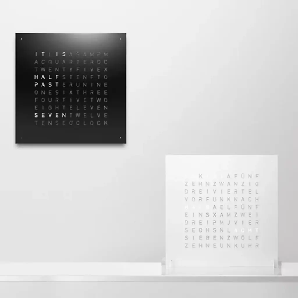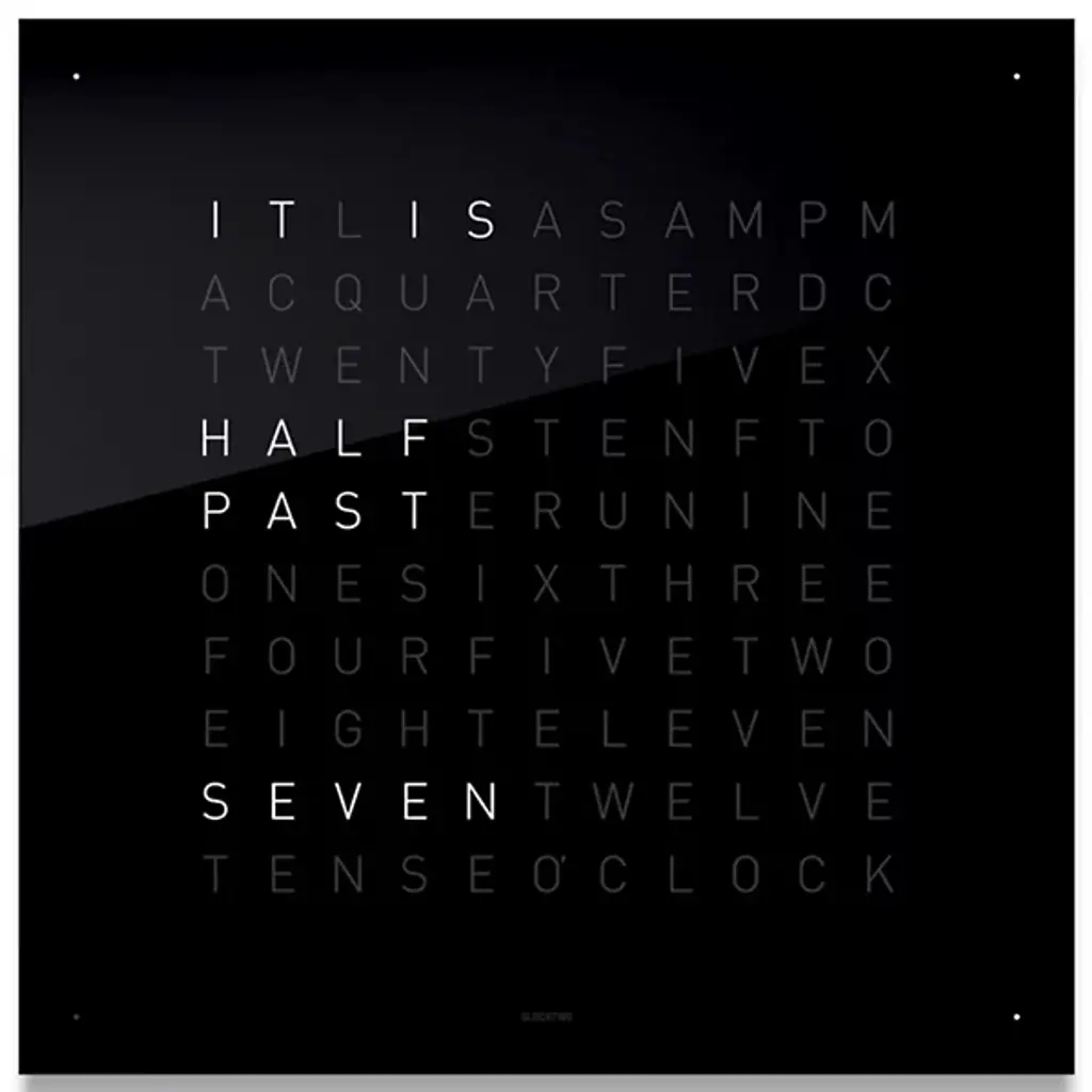 The more intuitive way to read a clock. This EARTH 45 Wall Clock is a stunner, with the spelled out words to tell the time quickly and with real-time recognition. It's a wonderful way to add flair with a time telling implement, without doing the same thing as everyone else. This is a truly unique and interesting way to use a timepiece as an art piece, without losing any functionality.