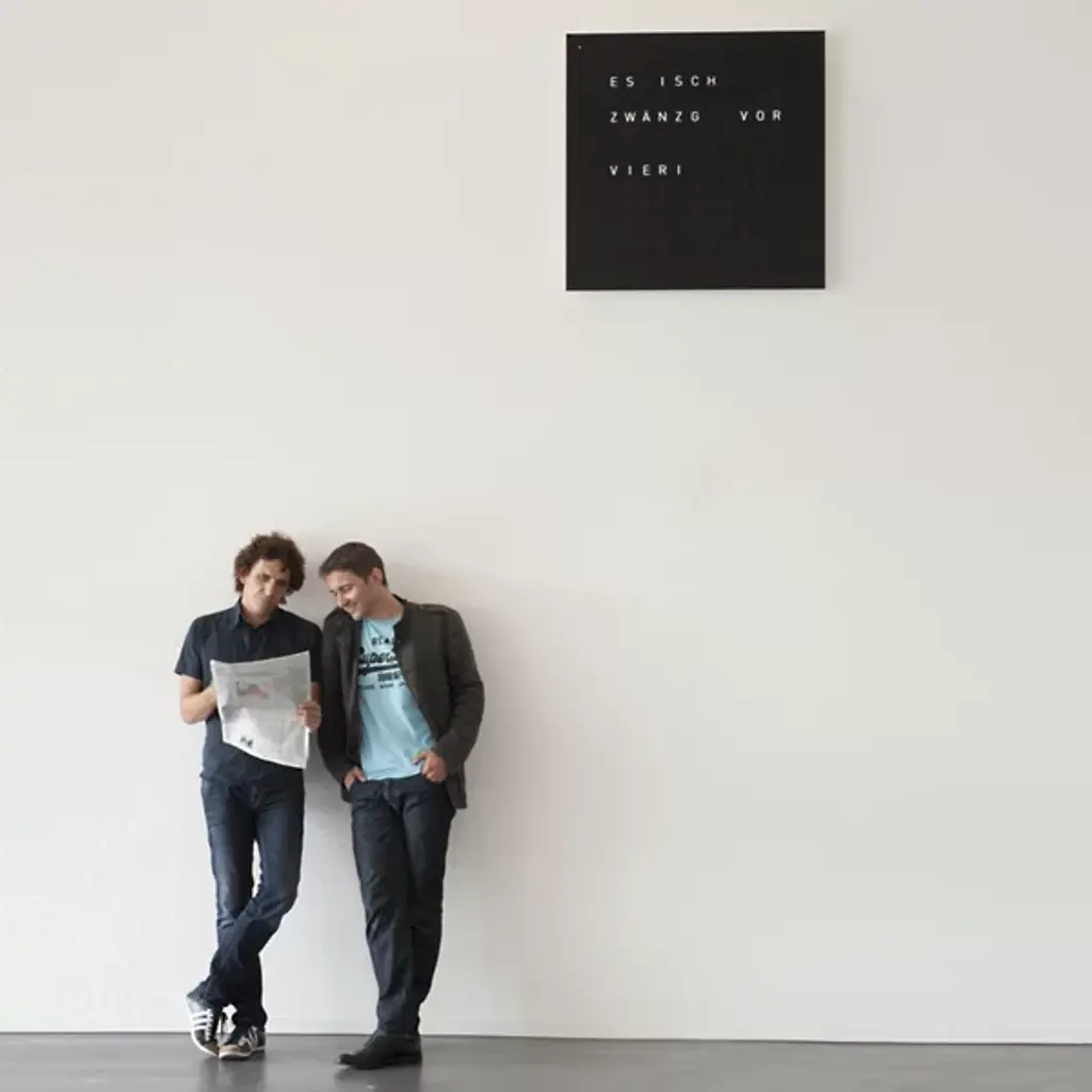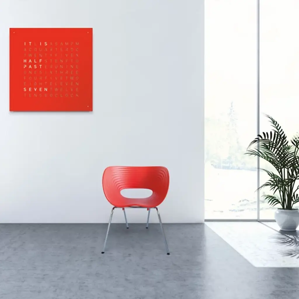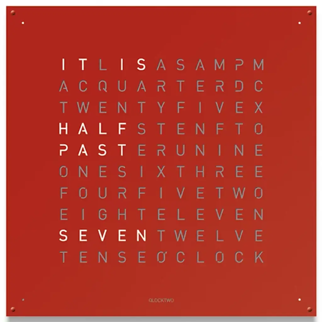 The Biegert & Funk EARTH 90 Wall Clock literally doubles the cool modern style spelled out by the original QLOCKTWO wall clock. It spans an impressive three feet, with laser cut letters in the stainless steel faceplate spelling out the time with strategic LED illumination. Choose from a range of colors and languages.