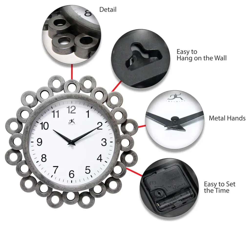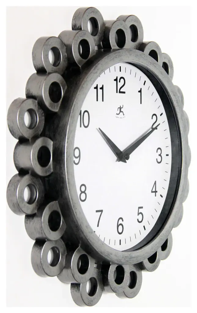 The Ellipse wall clock is one-of-a-kind! This clock features a brushed silver resin frame with decorative circular rings. The movement is silent, so no more annoying ticking sounds. This simple yet effective detailing is sure to catch the attention of anyone who walks into your home.