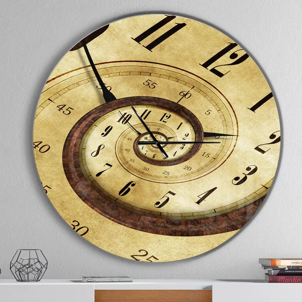 A beautiful addition to any home or office, this Modern & Contemporary round wall clock is made on 100% solid aluminum. It has a highly reflective glossy finish creating a sleek modern look. This Endless Time Spiral wall clock arrives completely ready to hang on the wall. Simply insert the �AAA� battery included with your order.Available in several size, this Modern Oversized Clock makes it the focal point of any room.Features - Ultra Gloss Coating ensures colors are extra vibrant with light reflection. - 1mm Aluminum grade sheet metal. - 1-inch mounting frame gives the illusion of artwork floating on the wall. - Mounting brackets and instructions are included. - High quality digital images are created directly into a glossy aluminum panel, producing a stunning and captivating print in the glossy finish of the metal. - Looks better than any photo paper and guaranteed to last at least 20 years. - Easy to clean with a microfiber cloth. - "AAA" battery included with your order. - Easy to hang. - Style: Contemporary - Material: Metal - Shape: RoundSee Options drop down for available sizes.