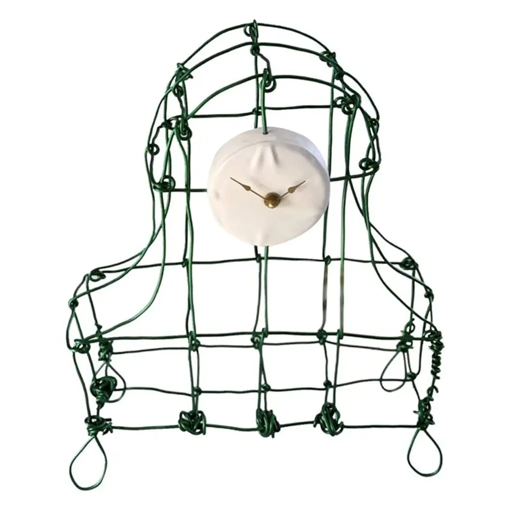 Kiki van Eijk designed Floating Frames as a collection of handmade objects in anodized aluminium wire. Each piece is meticulously handmade in her workshop; no two items are alike.Showing only the skeleton of the object yet representing a function in full state, these metal wire pieces seem to float in space. Kiki takes a single line and transforms it into a whimsical sculptural piece. By interweaving a ceramic part she highlights its function. The collection includes lighting, coffee table, candleholder, a mantel clock, wall clocks and a high cabinet, as an addition to the existing Floating Frames collection.Finishes: Brass, brass sandblasted, copper, copper sandblasted, copper oxidized, copper sulphur, copper sandblasted nickel plated, copper 24-karat gold-plated, copper nickel plated, copper oxidized copper plated, aluminium, aluminium blue anodized, aluminium red anodized, aluminium black anodized. The clocks include a battery powered quartz clockwork.Showing only the skeleton of the object yet representing a function in full state, these metal wire pieces seem to float in space. Kiki takes a single line and transforms it into a whimsical sculptural piece. By interweaving a ceramic part she highlights its function. The collection includes lighting, coffee table, candleholder, a mantel clock, wall clocks and a high cabinet, as an addition to the existing Floating Frames collection.Finishes: Brass, Brass sandblasted, Copper, Copper sandblasted, Copper oxidized, Copper sulphur, Copper sandblasted nickel plated, Copper 24K gold plated, Copper nickel plated, Copper oxidized copper plated, Aluminium, Aluminium blue anodized, Aluminium red anodized, Aluminium black anodized. The clocks include a battery powered quartz clockwork.