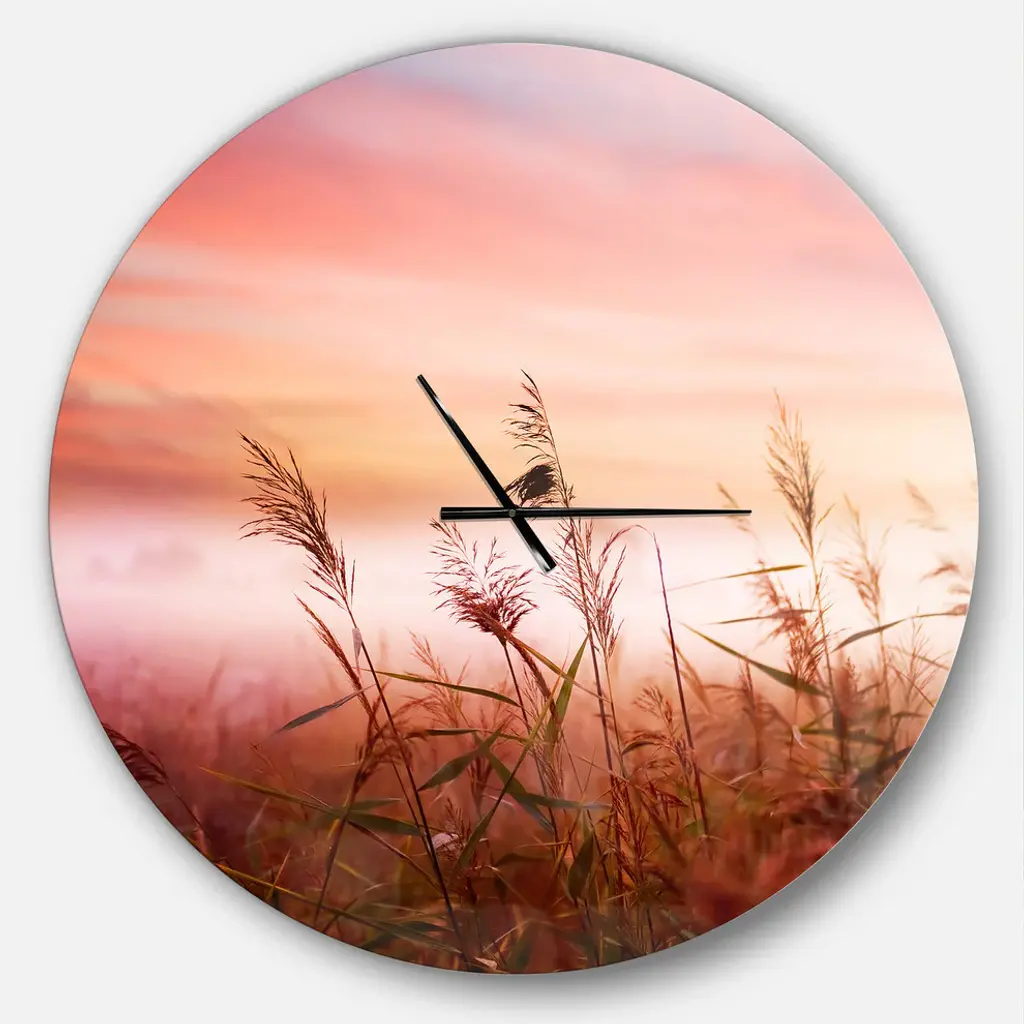 Foggy Land With Early Morning Mist Traditional Metal Clock, 36"x36"