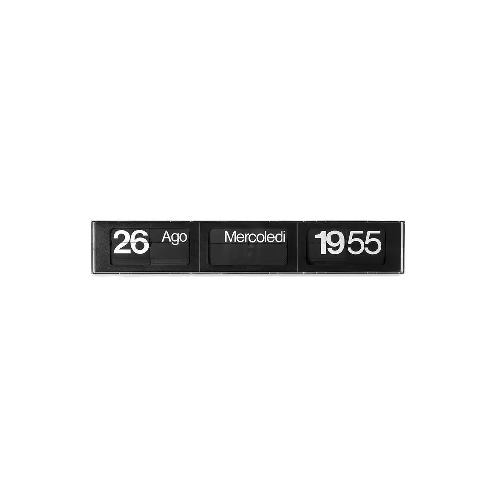 Font Clock is a wall clock made of ABS and transparent perspex.An instant design icon, Sebastian Wrong’s Font Clock features an ever-changing display that uses twelve different typefaces and a flip mechanism, in a design that is both nostalgic and contemporary.Materials:White ABS plastic, transparent perspex.