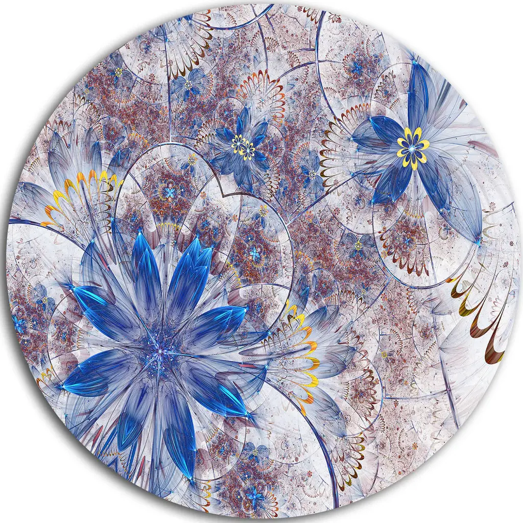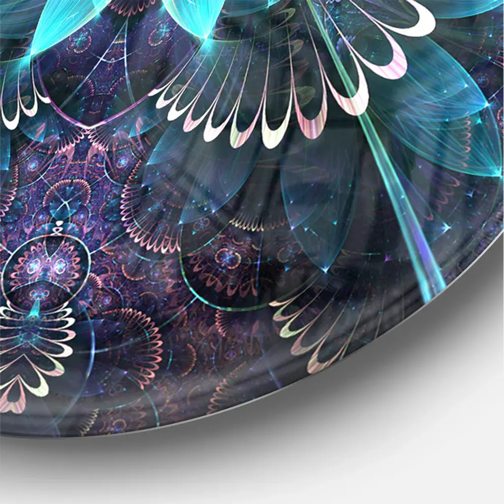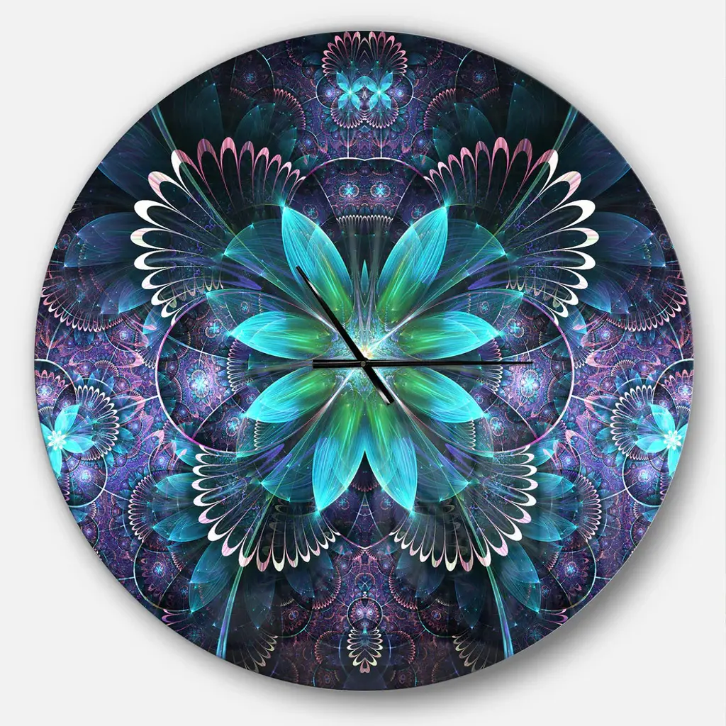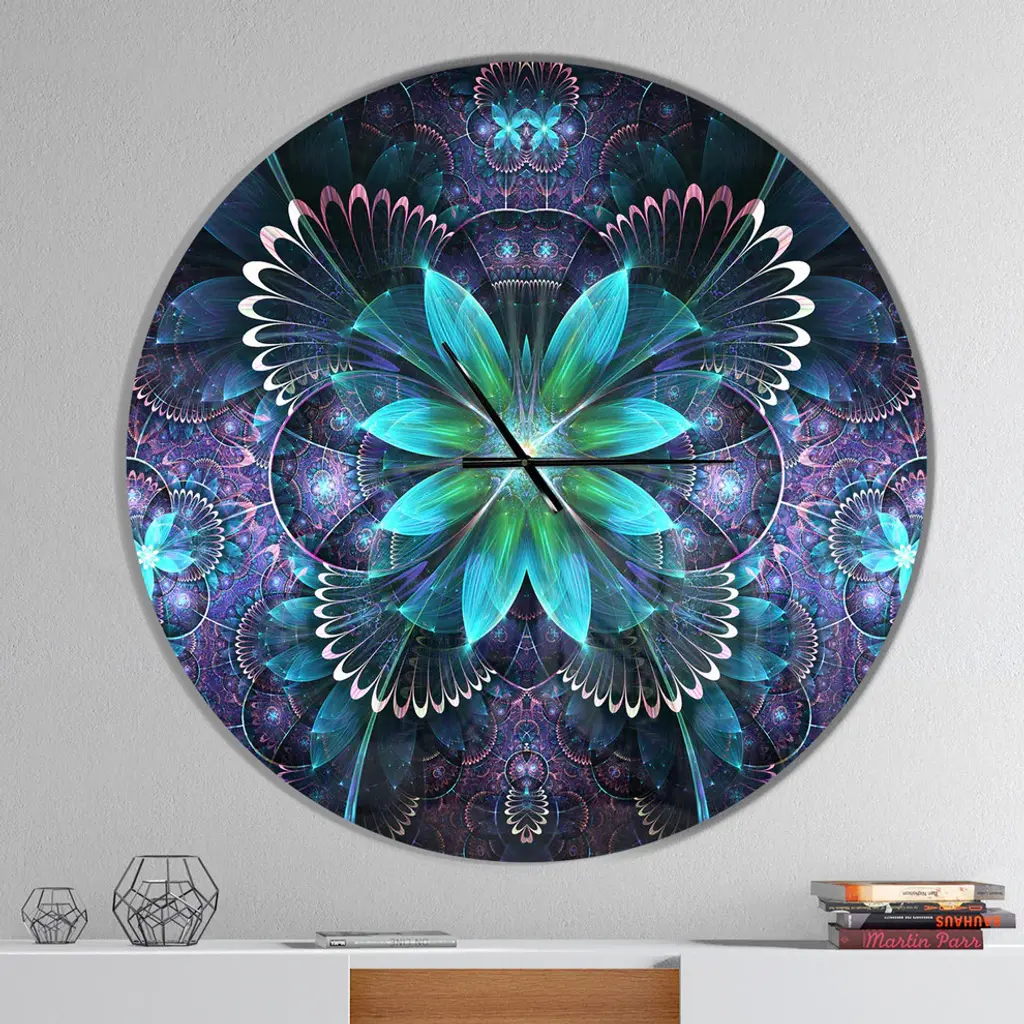 Fractal Flower Blue Digital Art Large Modern Metal Clock, 36x36
