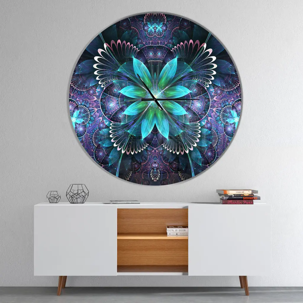 A beautiful addition to any home or office, this Modern & Contemporary round wall clock is made on 100% solid aluminum. It has a highly reflective glossy finish creating a sleek modern look. This Fractal Flower Blue Digital Art wall clock arrives completely ready to hang on the wall. Simply insert the �AAA� battery included with your order.Available in several size, this Modern Oversized Clock makes it the focal point of any room.Features - Ultra Gloss Coating ensures colors are extra vibrant with light reflection. - 1mm Aluminum grade sheet metal. - 1-inch mounting frame gives the illusion of artwork floating on the wall. - Mounting brackets and instructions are included. - High quality digital images are created directly into a glossy aluminum panel, producing a stunning and captivating print in the glossy finish of the metal. - Looks better than any photo paper and guaranteed to last at least 20 years. - Easy to clean with a microfiber cloth. - "AAA" battery included with your order. - Easy to hang. - Style: Modern & Contemporary - Material: Metal - Shape: RoundSee Options drop down for available sizes.
