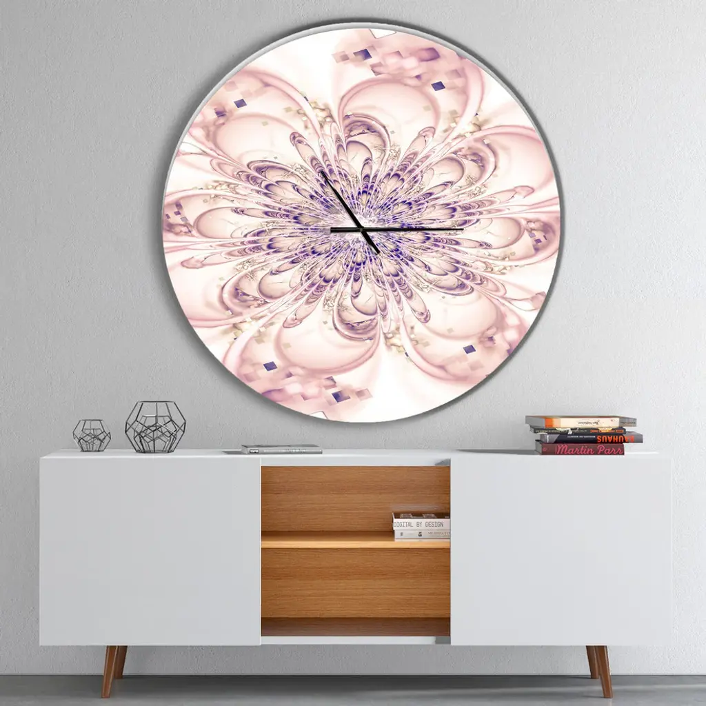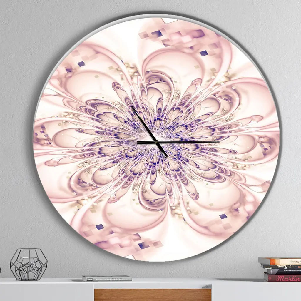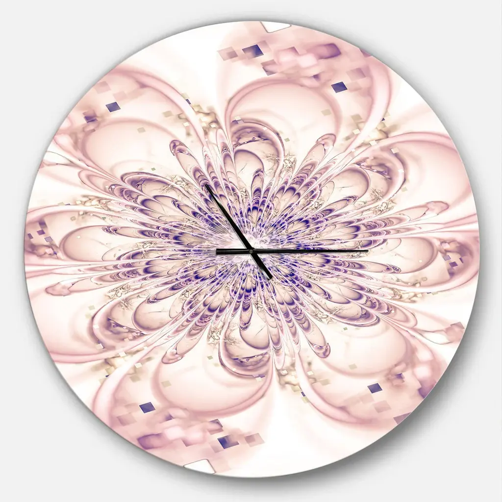 Full Bloom Fractal Flower In Pink Large Floral Metal Clock, 36x36
