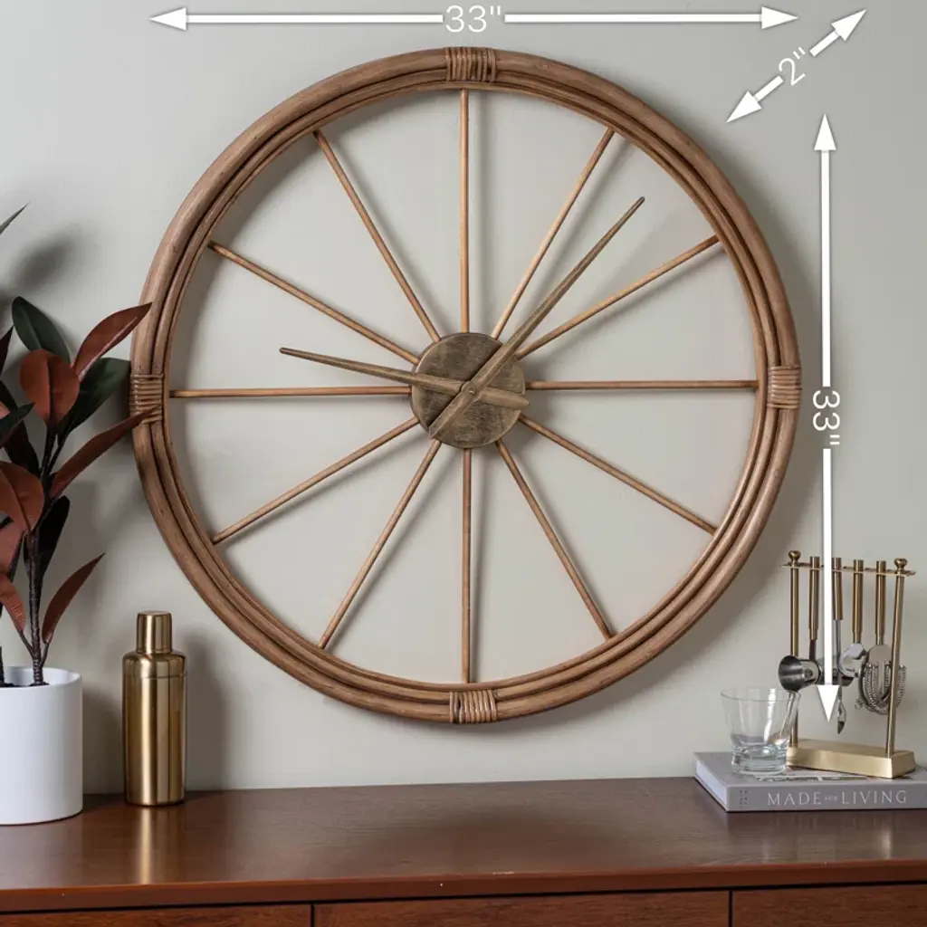 Embrace coastal living with this round, skeleton clock. Its exposed metal hands and quartz crystal movement effortlessly elevate your space. Whether indoors or outdoors, this battery-powered time piece complements tropical and global-inspired decor.