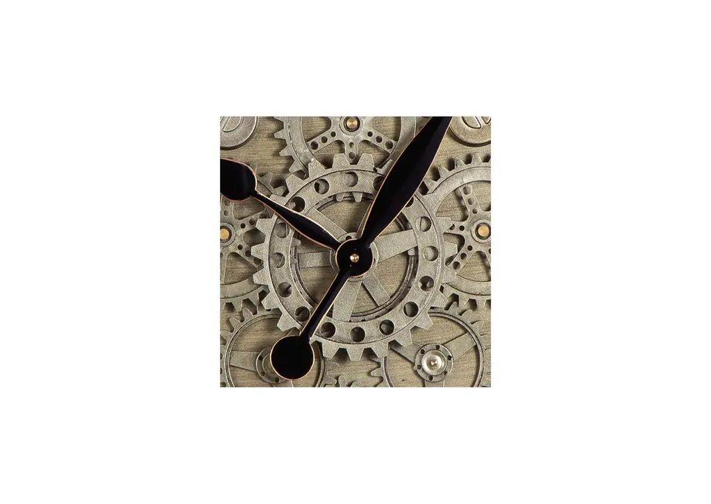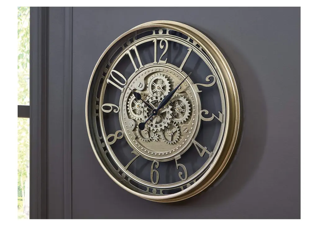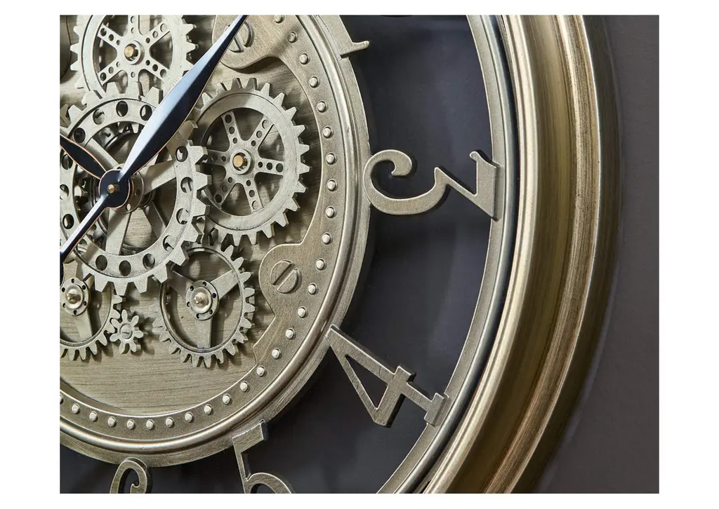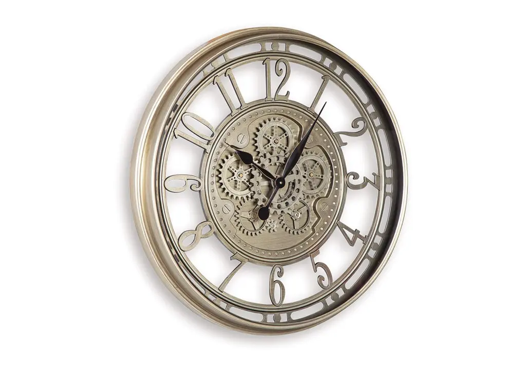 Gear up for greatness with the vintage-inspired Gilover wall clock. A champagne finish adds a touch of elegance, while the intricate moving gears offer a glimpse into the inner workings of time. It may look old, but it still runs like clockwork. Weight 19.000 lbs. (8.55kgs.)