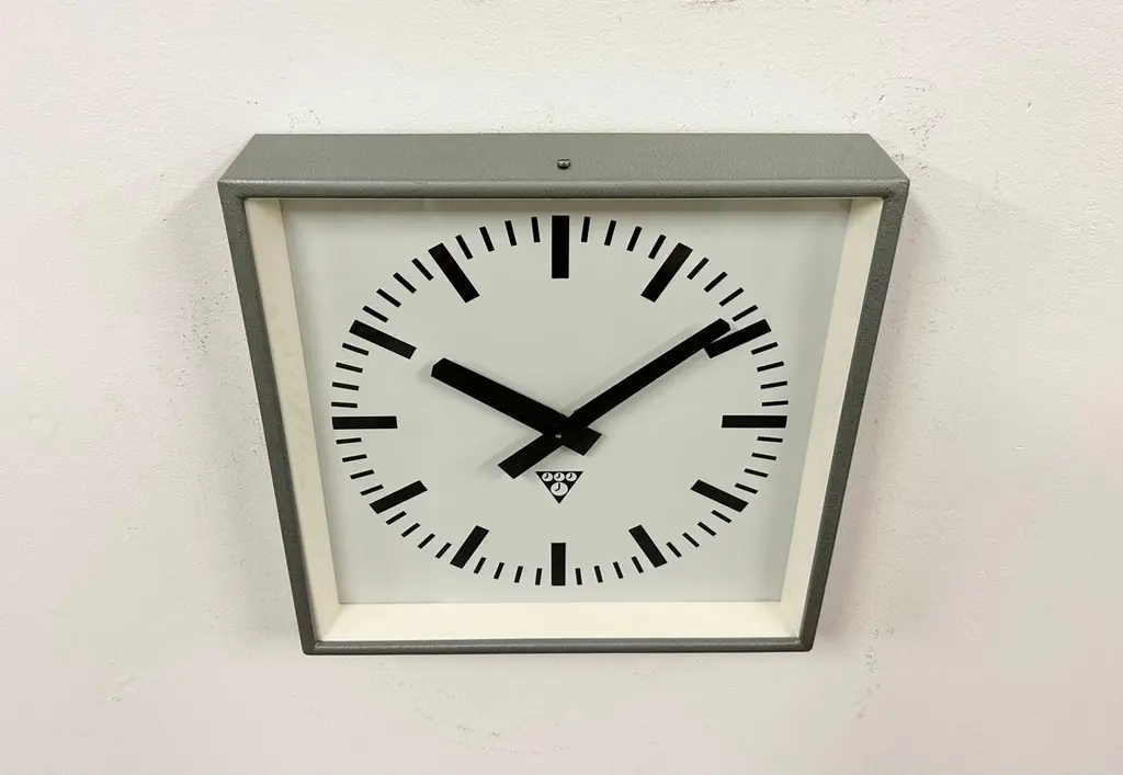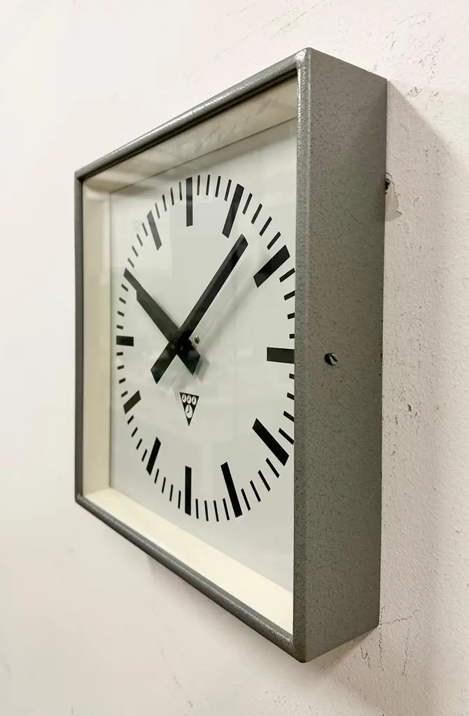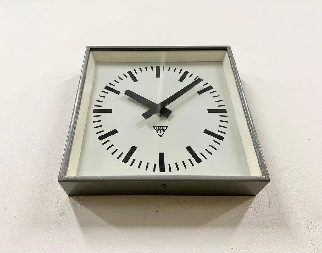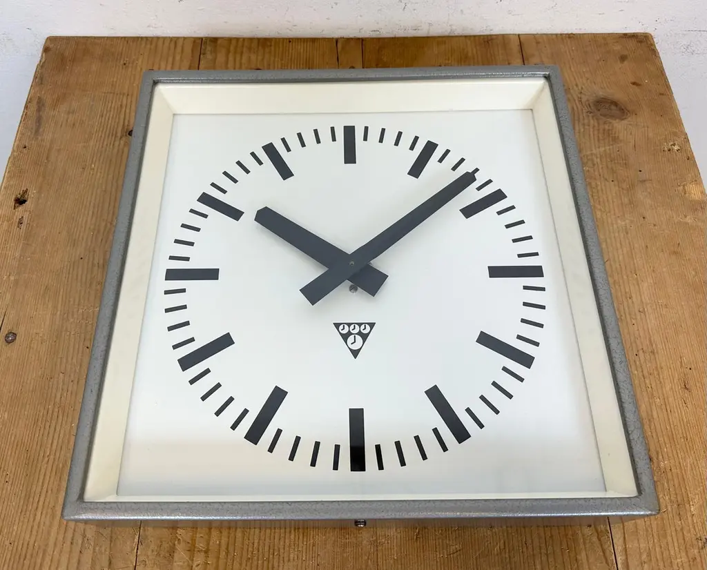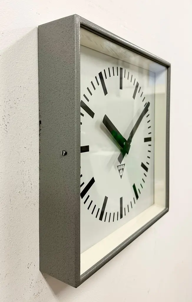 Grey Industrial Square Wall Clock From Pragotron, 1970s