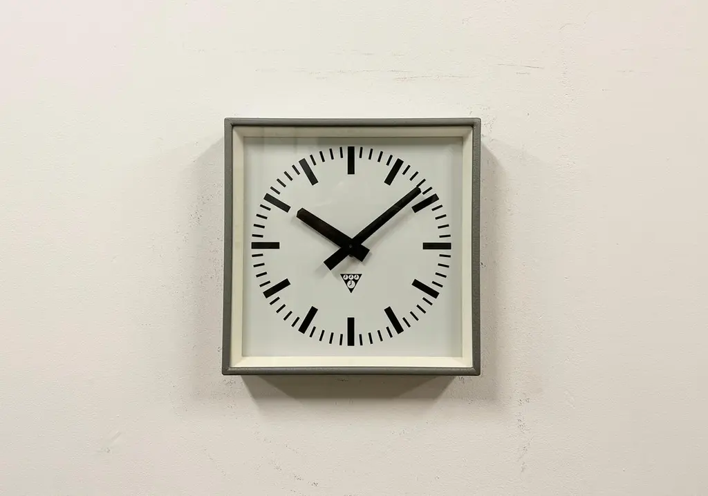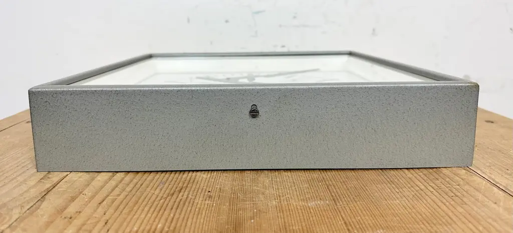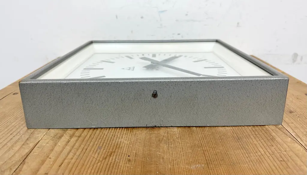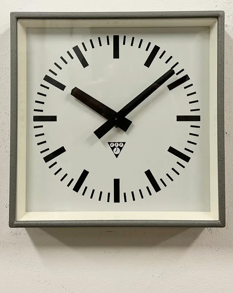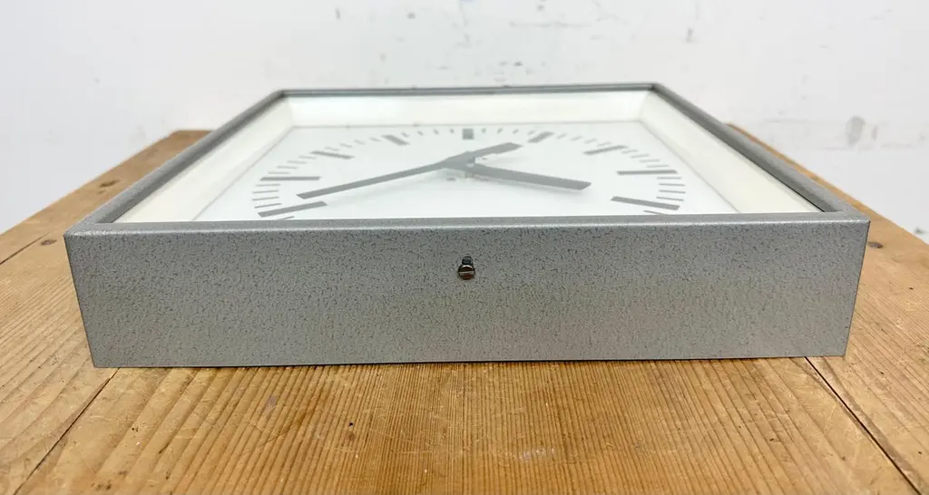 Grey Industrial Square Wall Clock From Pragotron, 1970s