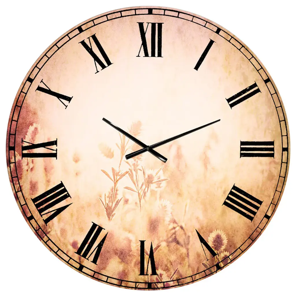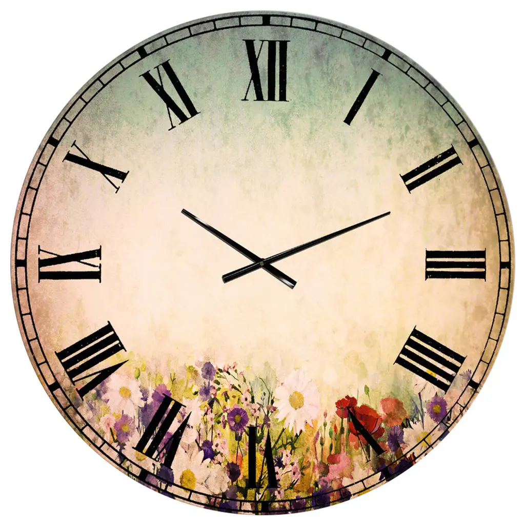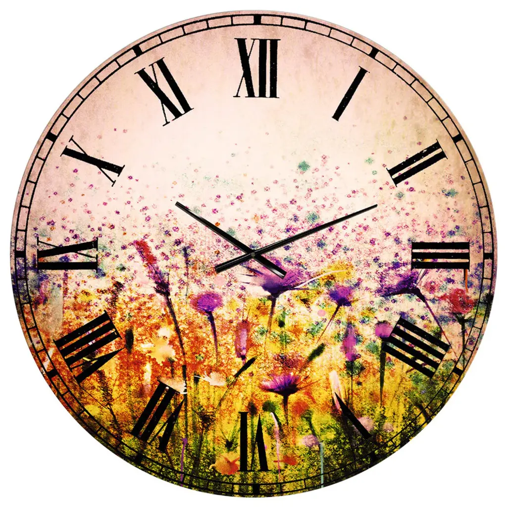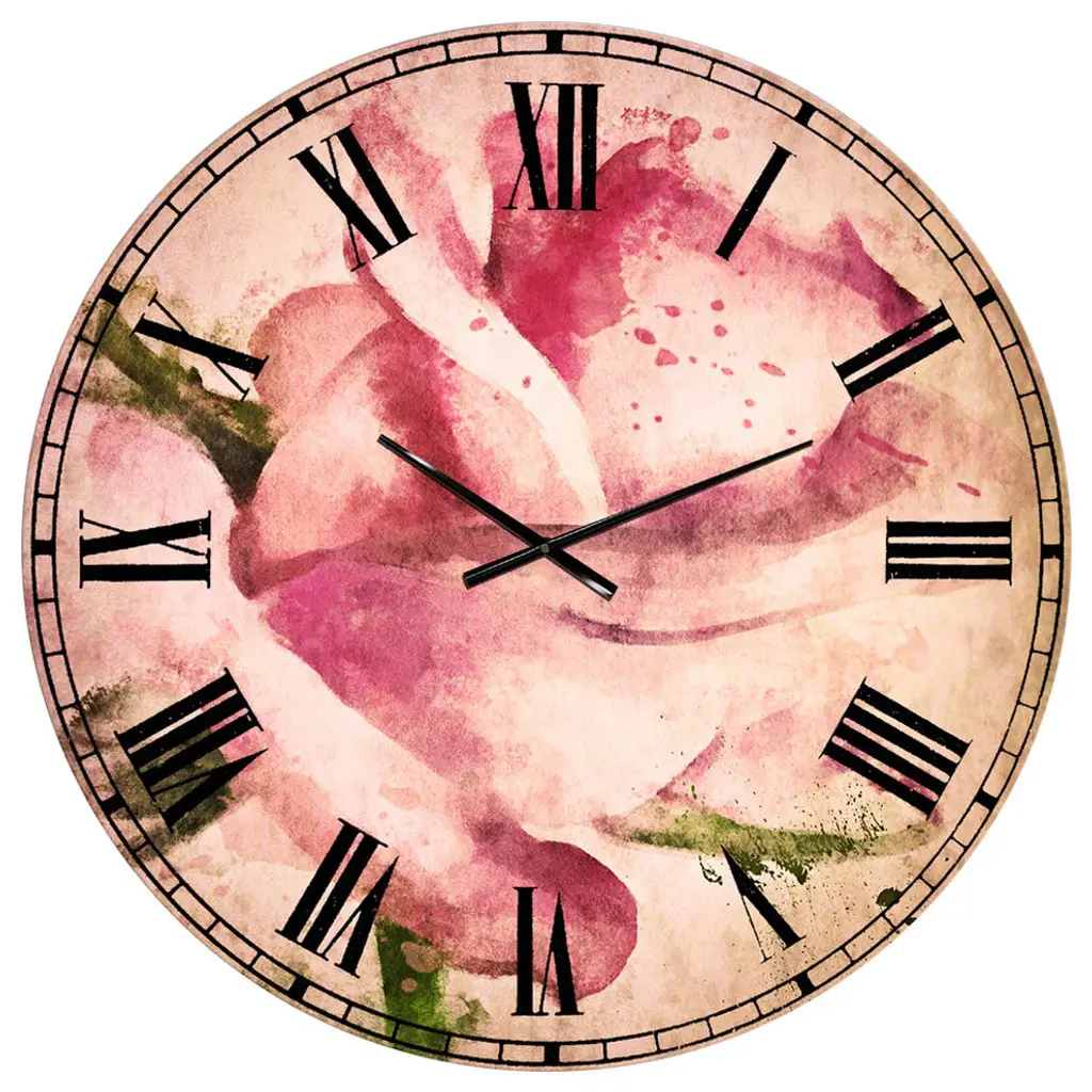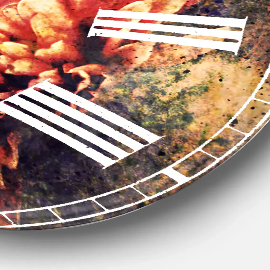 A beautiful addition to any home or office, this Traditional round wall clock is made on 100% solid aluminum. It has a highly reflective glossy finish creating a sleek modern look. This Grunge Art with Flower and Splashes wall clock arrives completely ready to hang on the wall. Simply insert the �AAA� battery included with your order.Available in several size, this Modern Oversized Clock makes it the focal point of any room.Features - Ultra Gloss Coating ensures colors are extra vibrant with light reflection. - 1mm Aluminum grade sheet metal. - 1-inch mounting frame gives the illusion of artwork floating on the wall. - Mounting brackets and instructions are included. - High quality digital images are created directly into a glossy aluminum panel, producing a stunning and captivating print in the glossy finish of the metal. - Looks better than any photo paper and guaranteed to last at least 20 years. - Easy to clean with a microfiber cloth. - "AAA" battery included with your order. - Easy to hang. - Style: Traditional - Material: Metal - Shape: RoundSee Options drop down for available sizes.