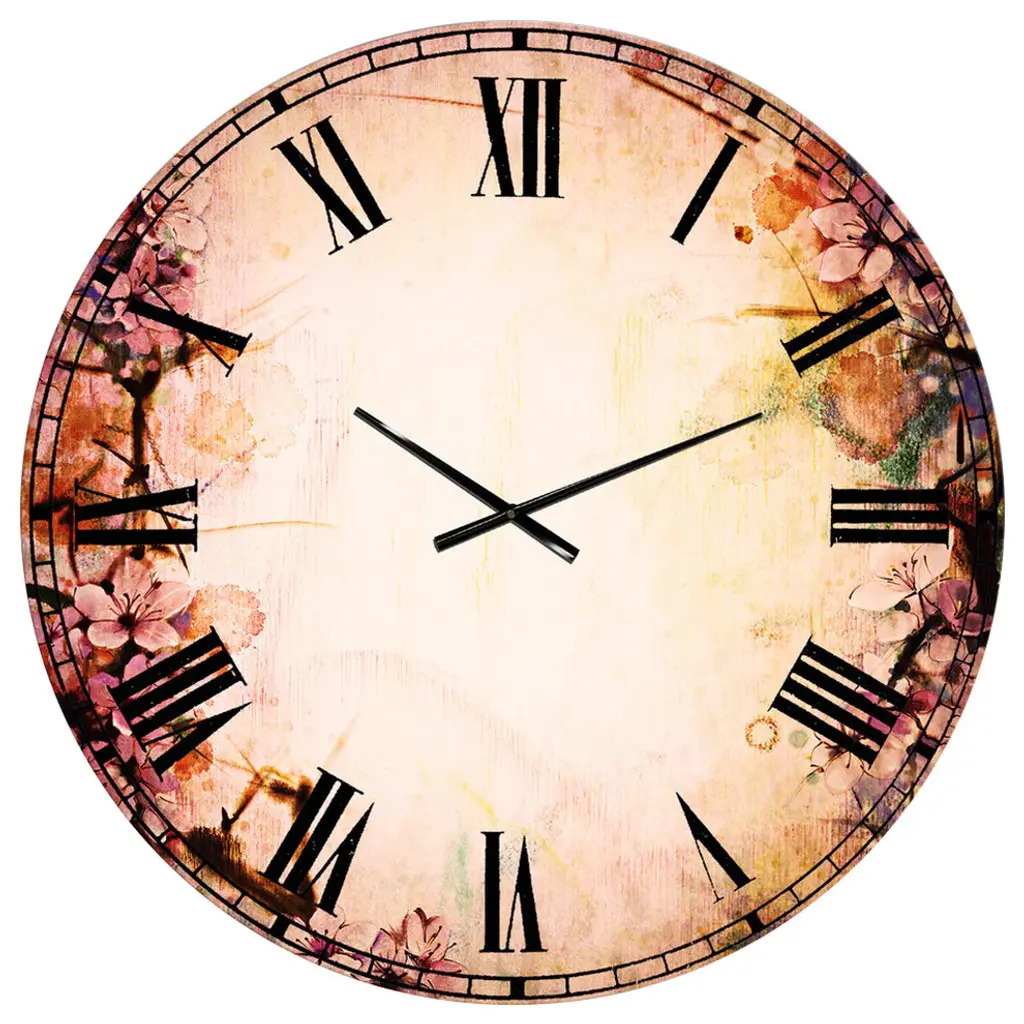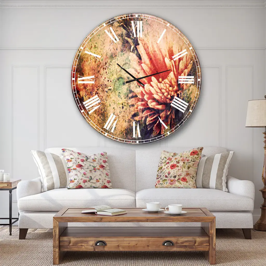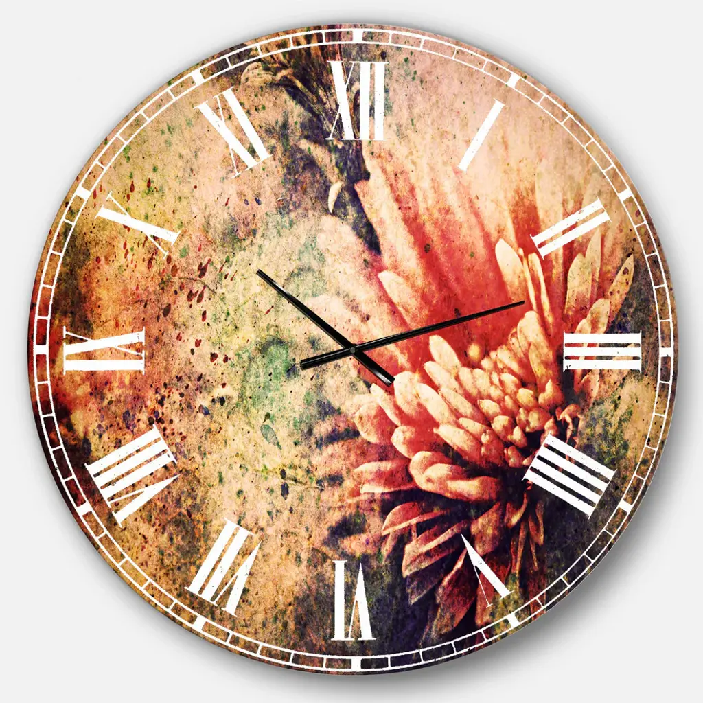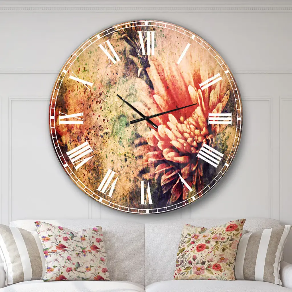 Grunge Art With Flower And Splashes Flower Metal Clock, 36x36