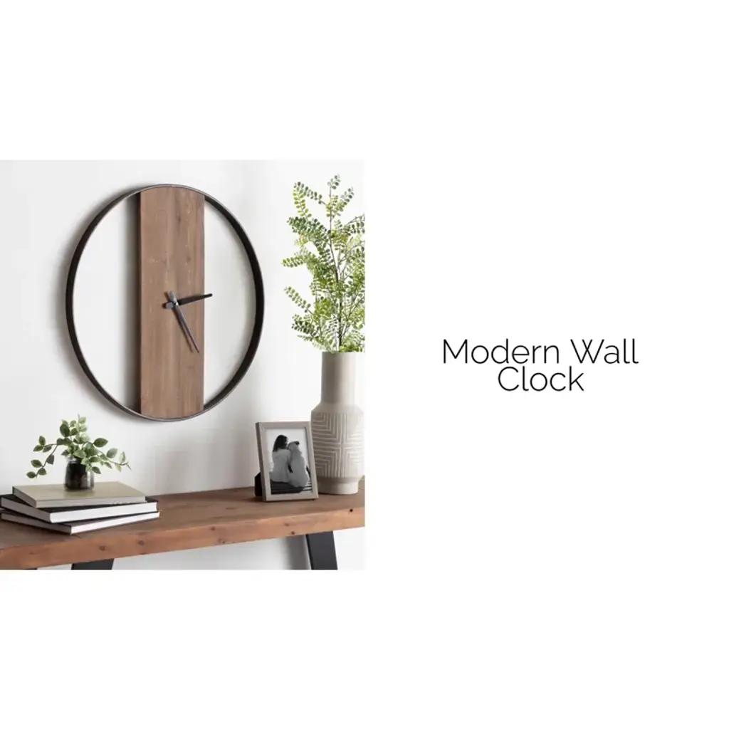 The best part about this sleek, minimalist wall clock? It’s easy to pair with almost any decor. It has a wooden center and a dark rustic metal hoop with matching black hands, which keep a numberless account of the time. It includes a metal keyhole hanger to easily attach it easily and securely to your wall, and it arrives fully assembled. It can also be propped up against a wall, too. This clock requires a single AA battery, which is not included.