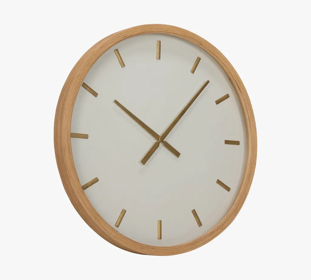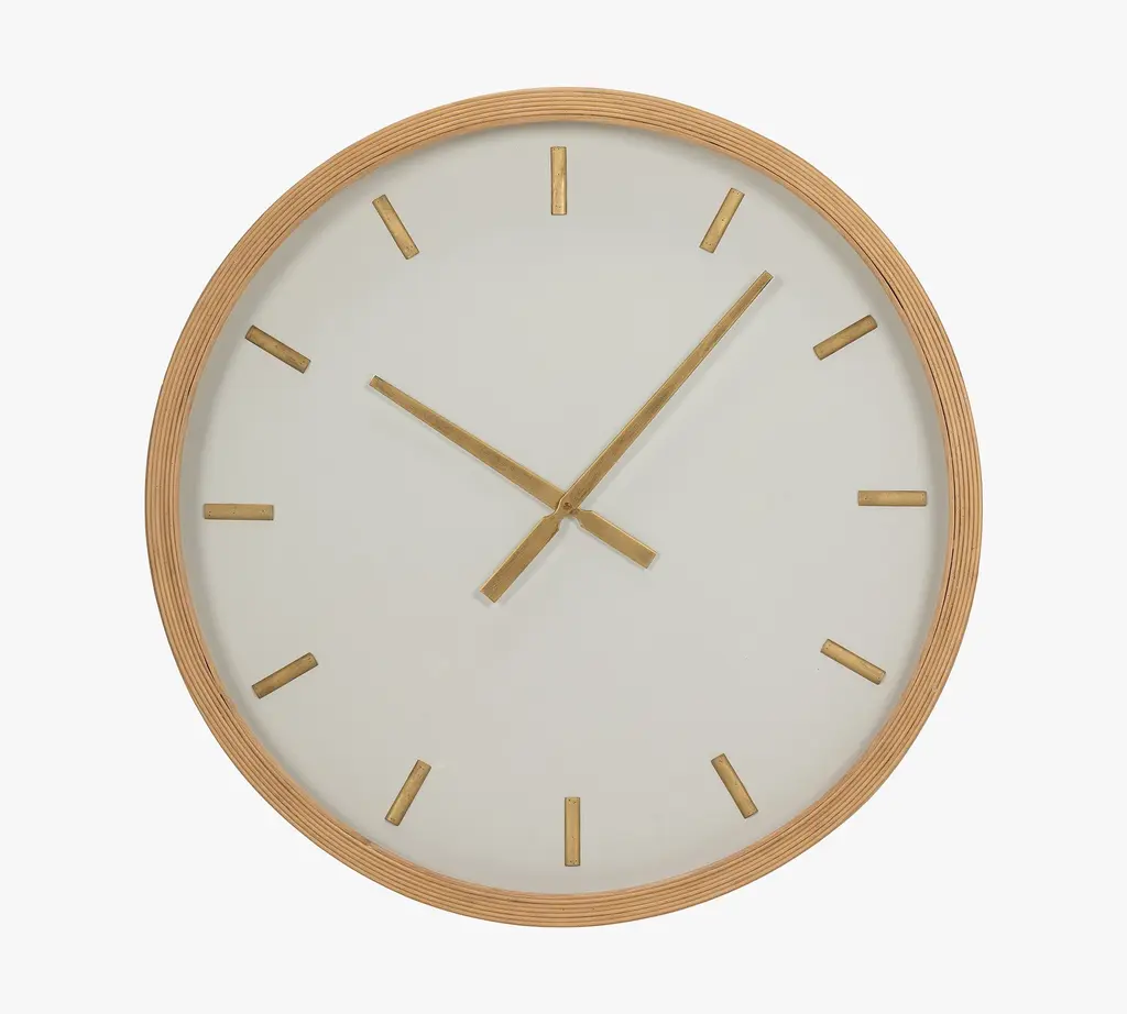 Save time searching for the perfect final touch to your wall with our Bondi clock. Natural wood and lustrous, gold-finished metal are a sleek pairing that compliments any room.