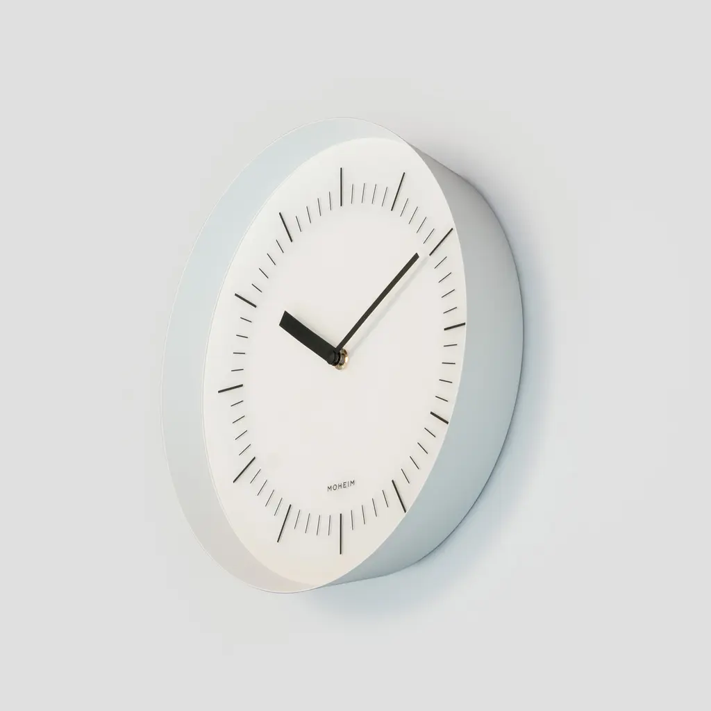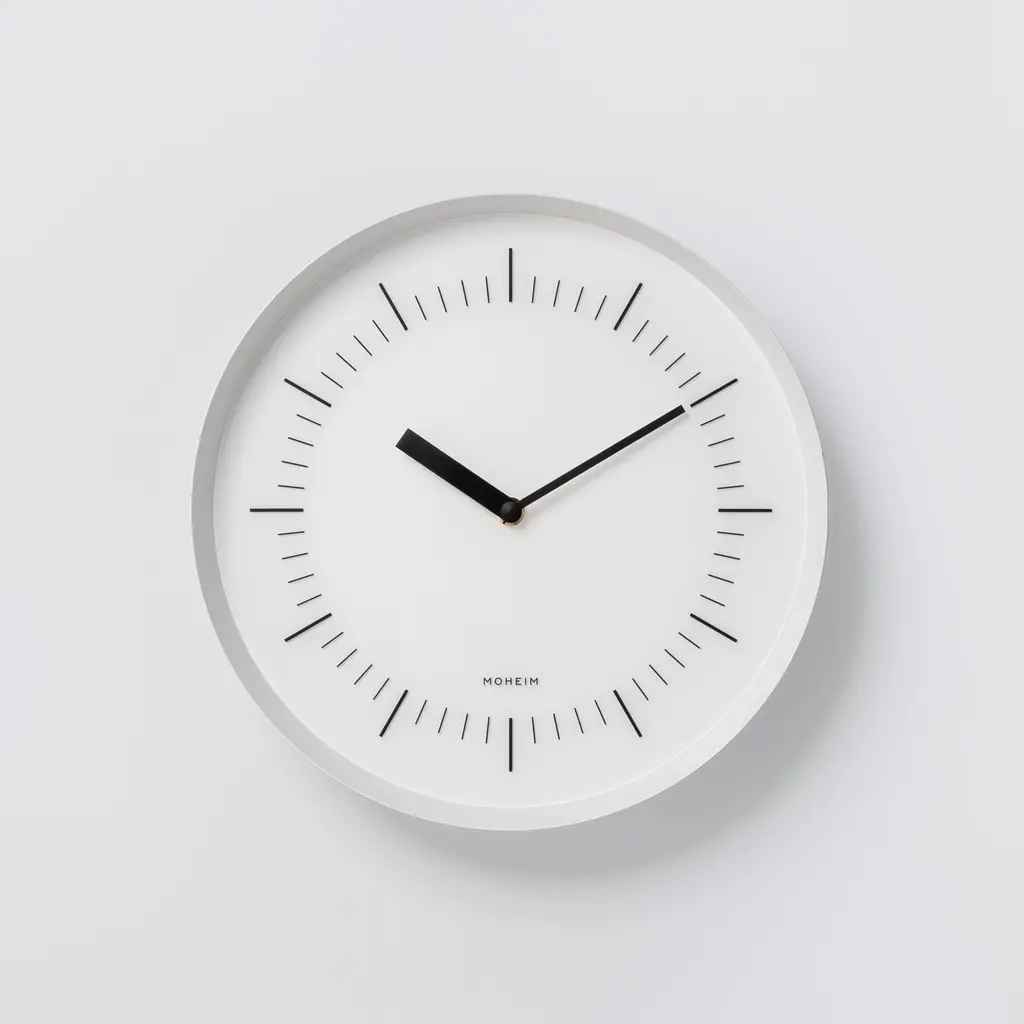 The passage of time looks different, depending on where you are. This is the concept behind the Horn wall clock. Designed by Mute for Moheim, the clock features a thin metal case that widens depending on the viewing angle. From the front, the frame appears as a thin case. Form the side, it stretches outward but retains a sense of lightness. The minimalist dial features thin line markers and two hands. As beautifully made as it is designed, the Horn wall clock features a metal sheet frame crafted with the traditional Hera-shibori technique, or metal spinning. Each wall clock is handmade in Niigata, Japan.