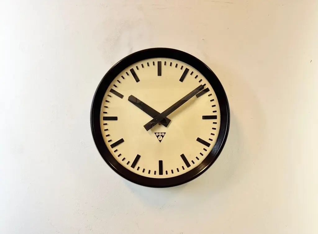 Industrial Bakelite Factory Wall Clock From Pragotron, 1960s