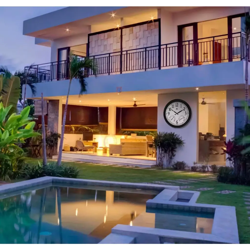 The Classic Outdoor Wall Clock brings together traditional styling with modern sensibilities. A big and bold 24-inch diameter clock is perfect for multiple spaces in your home. Because of its expansive design, it also goes well with utilitarian spaces like the study, a business or office setting, and the garage. This traditional clock lets you boost your wall decor's wow quotient in a subtle, stylish way. With a humidity gauge and a thermometer, this clock is perfect for any pool or patio area, and you can read the time without straining your eyes. This large wall clock has black metal hands and large, easy-to-read numbers on a clean white face. Available in an indoor OR outdoor version, the quartz movement allows for accurate time keeping, and you can wirelessly display this clock anywhere with 1 single AA battery.