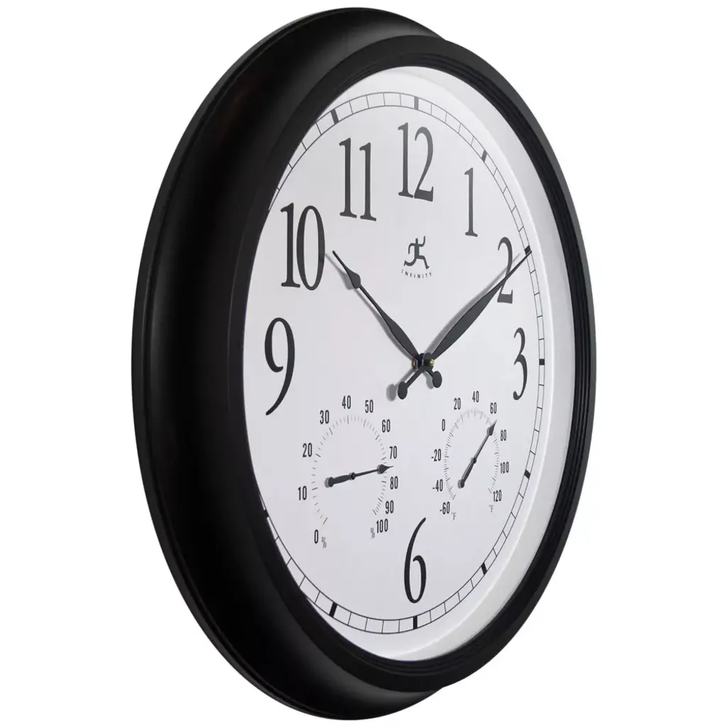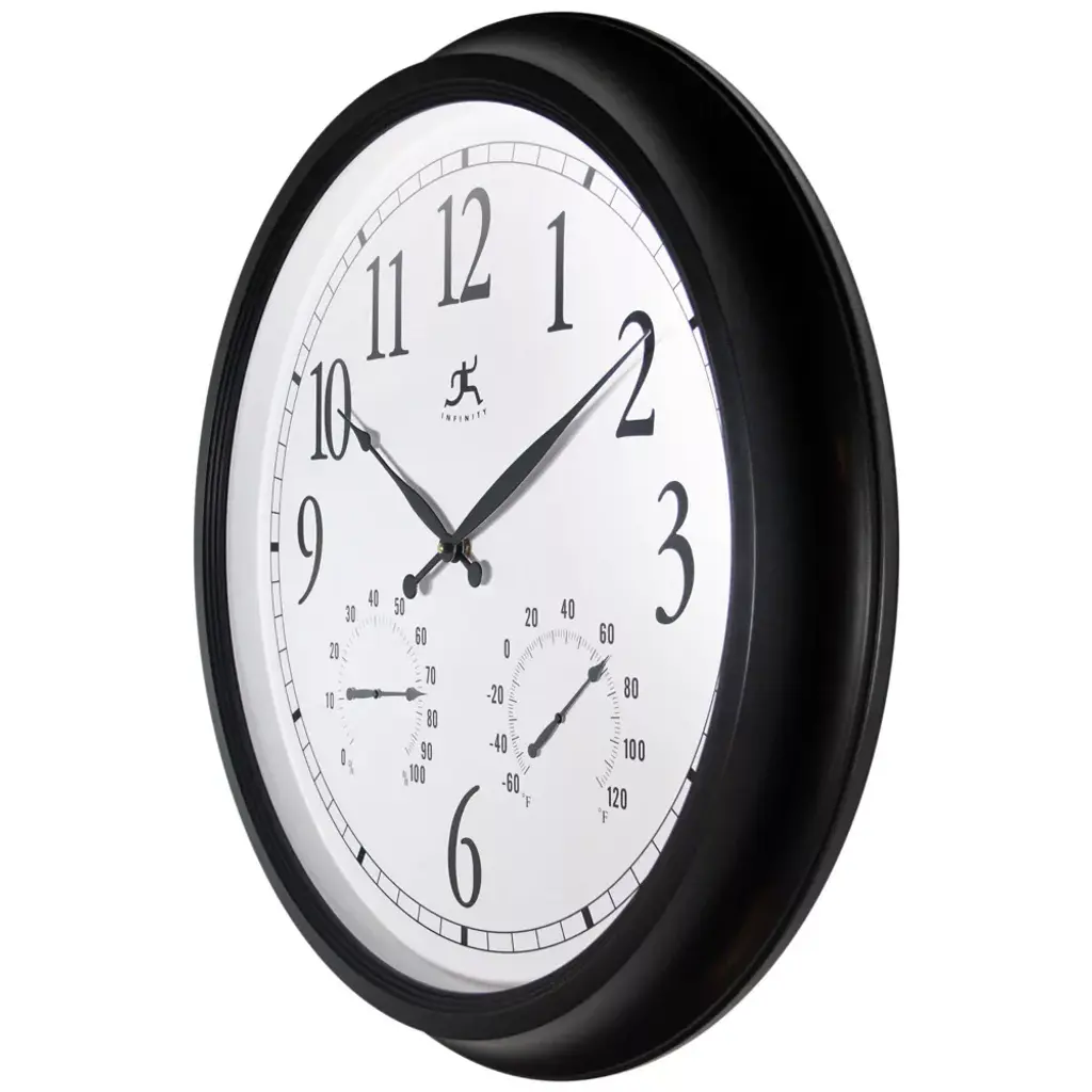 Infinity Instruments 24" Classic Outdoor Wall Clock Black : Modern Analog, Indoor/outdoor, Round Shape, 24-inch Display