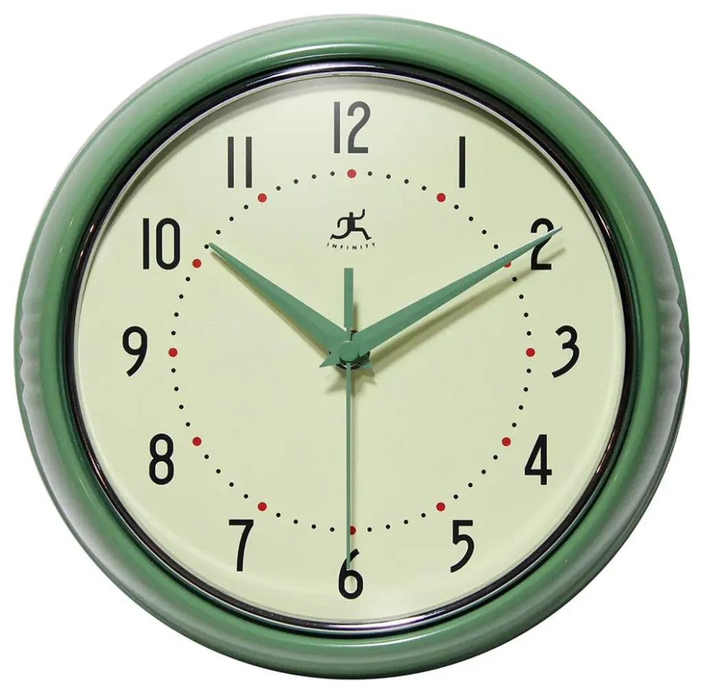 Infinity Instruments Retro Kitchen Vintage 50s Wall Clock, Green